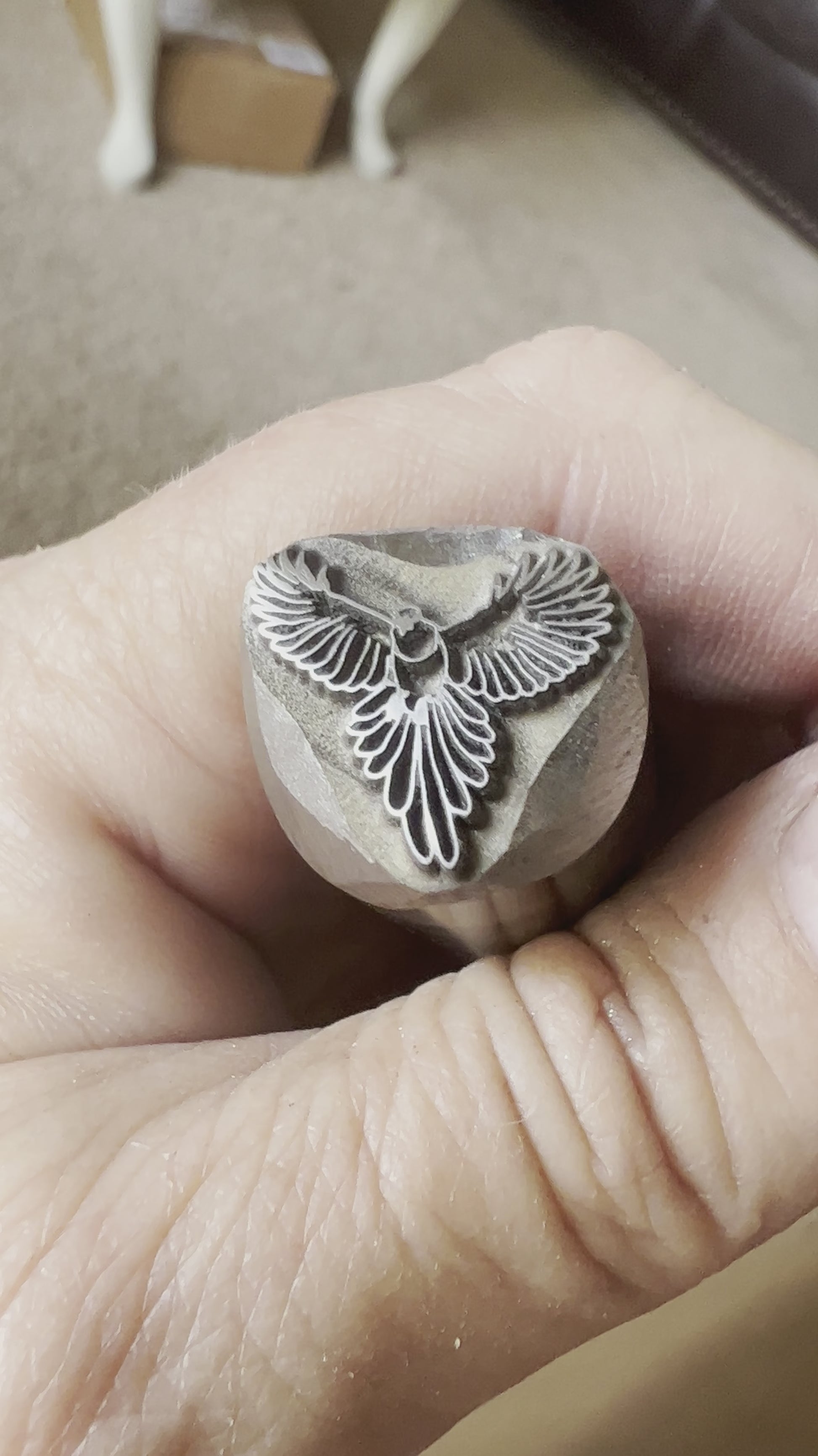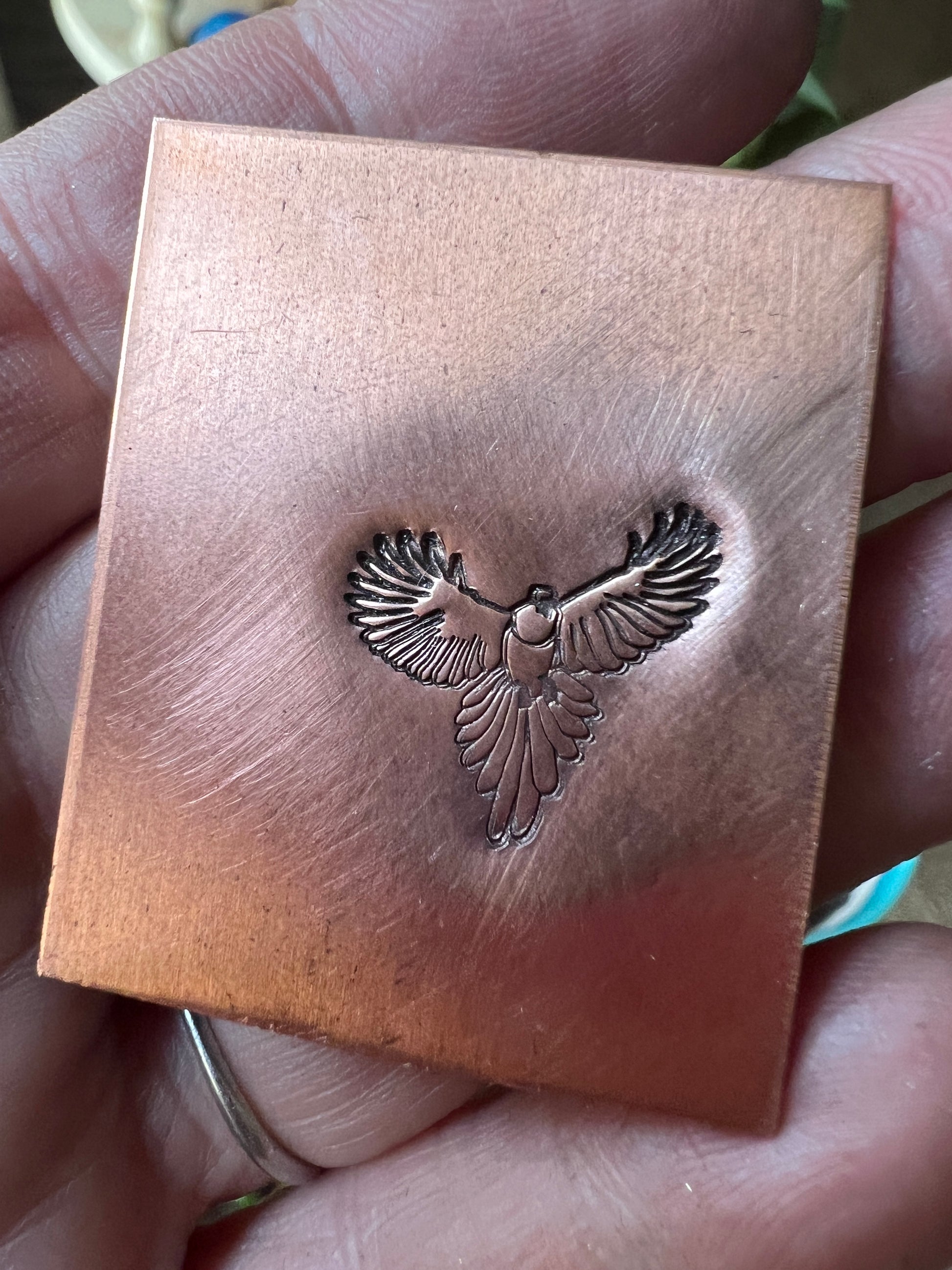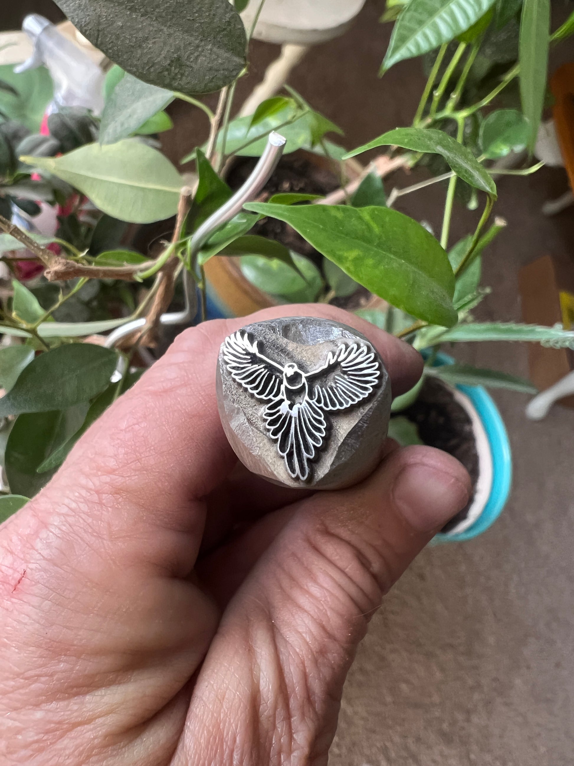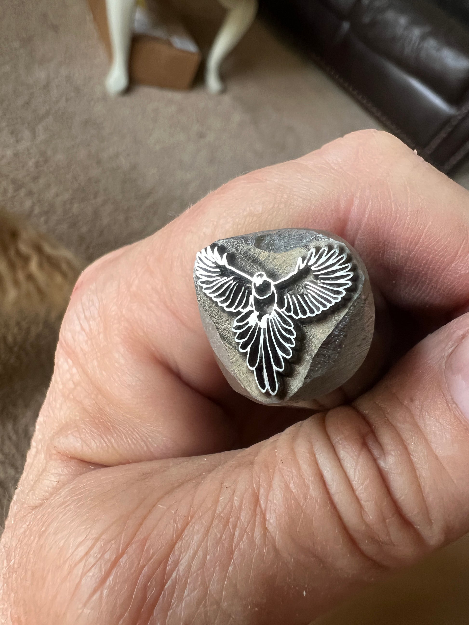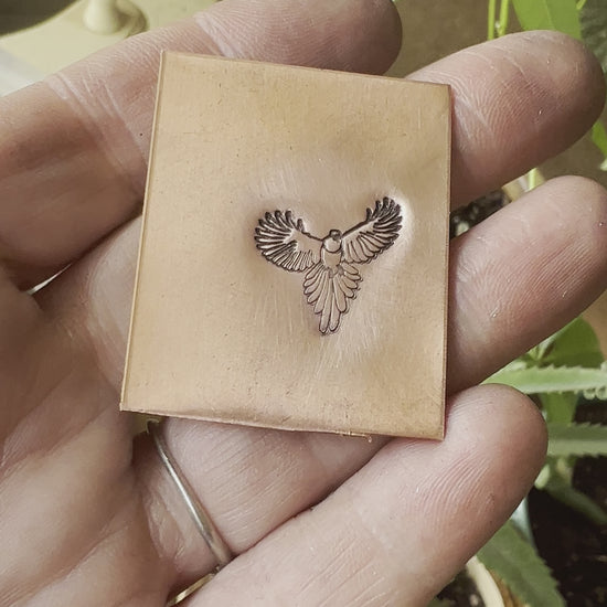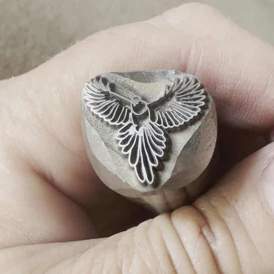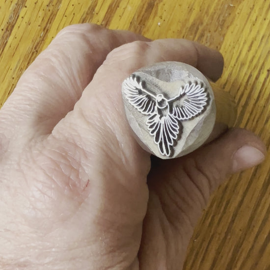 This is a fairly large stamp of a bird in flight, measuring 17 mm approximately