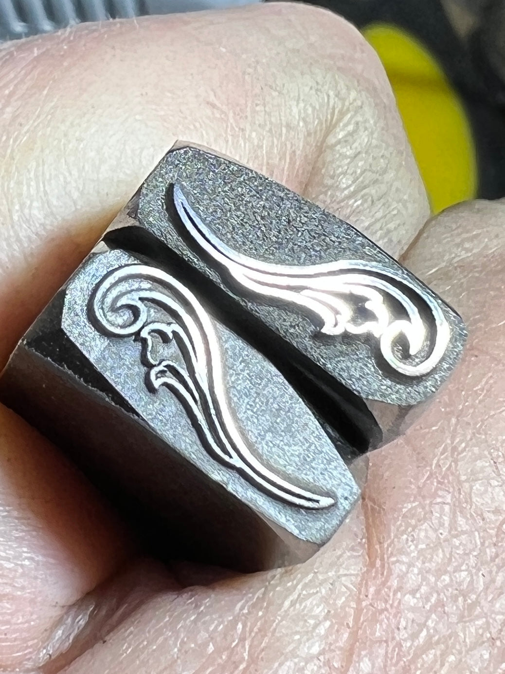 You will get a left and a right pair of these stamps, so you can make a symetrical border. Daniel Urrea Legacy design. Design is 15 mm long on heat treated steel bar.