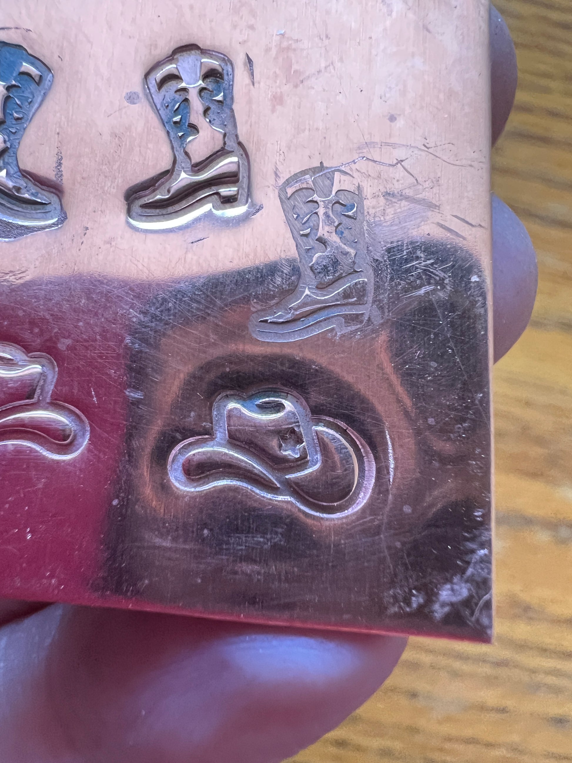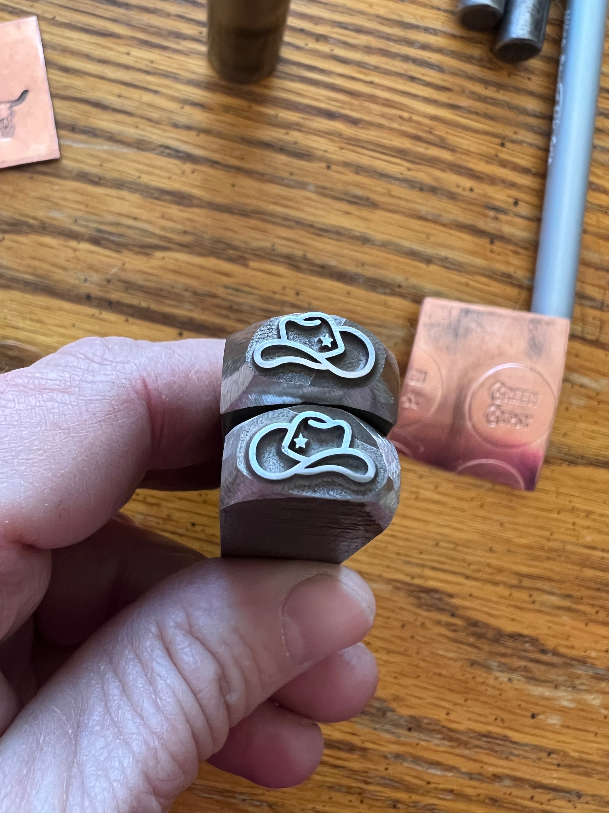 iconic of western culture, this is a design for a western cowboy hat with a star on the crown. Approximately 10 mm.
