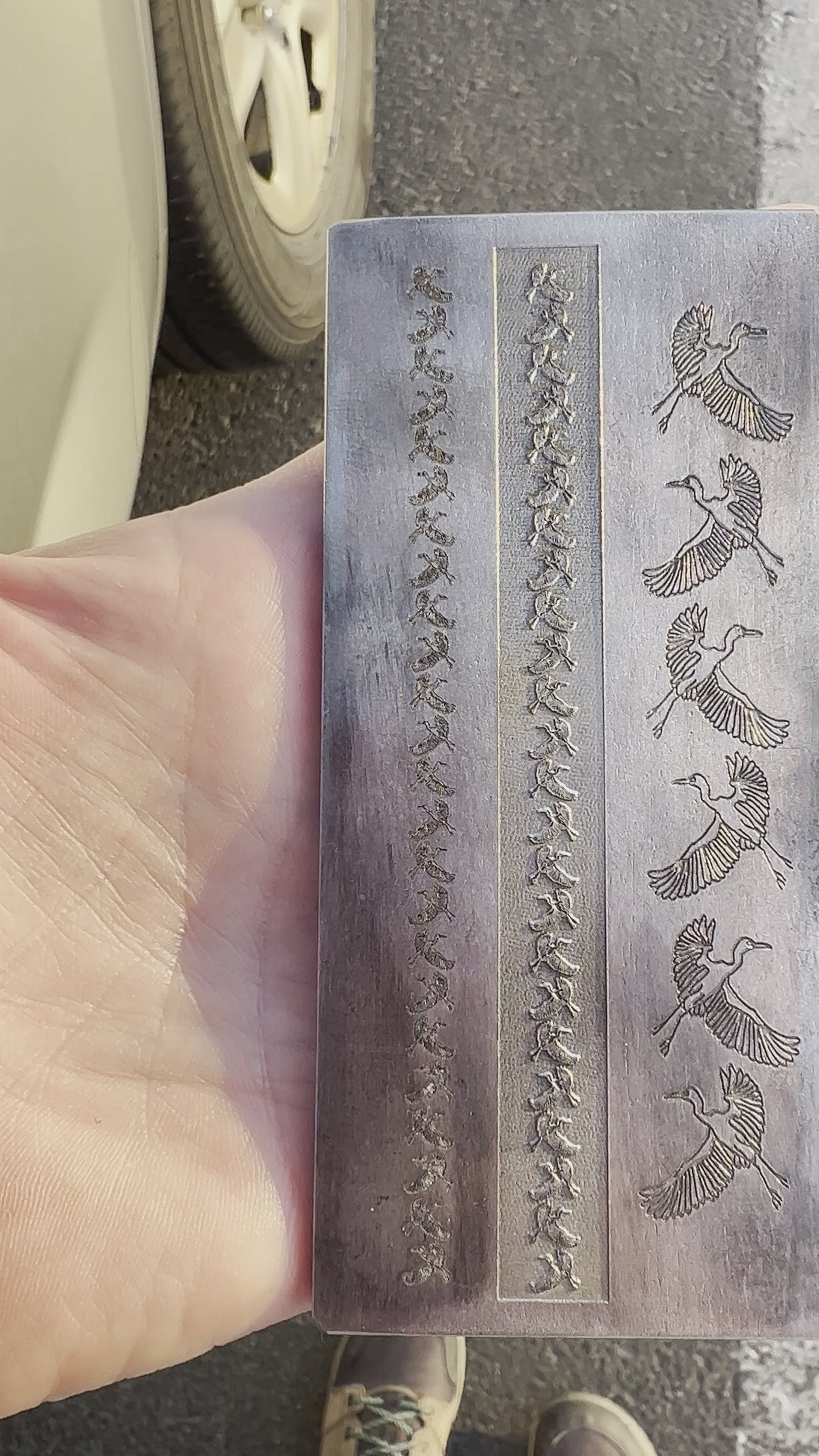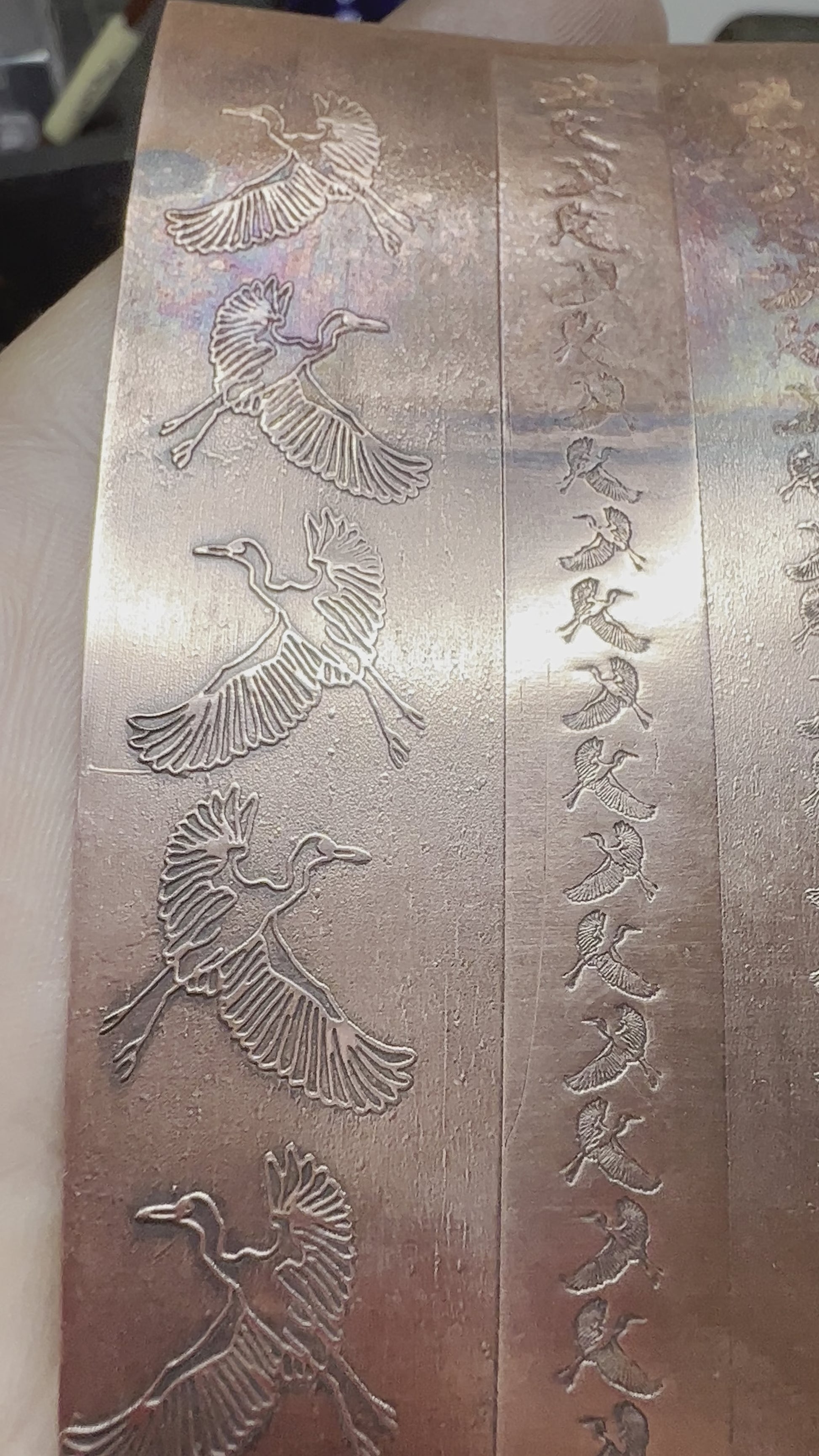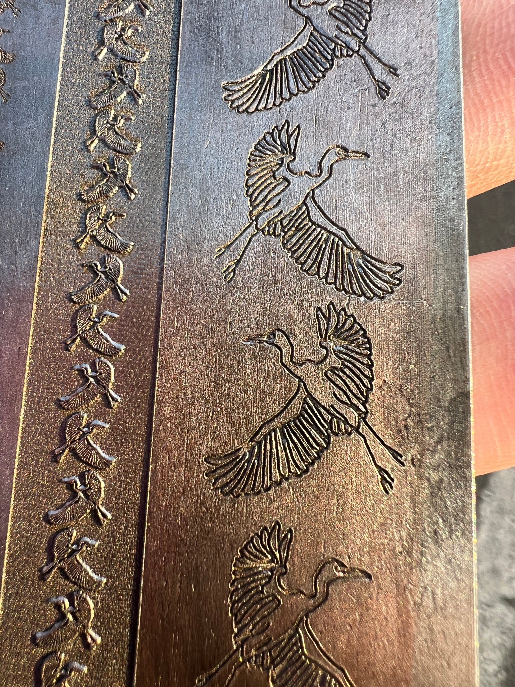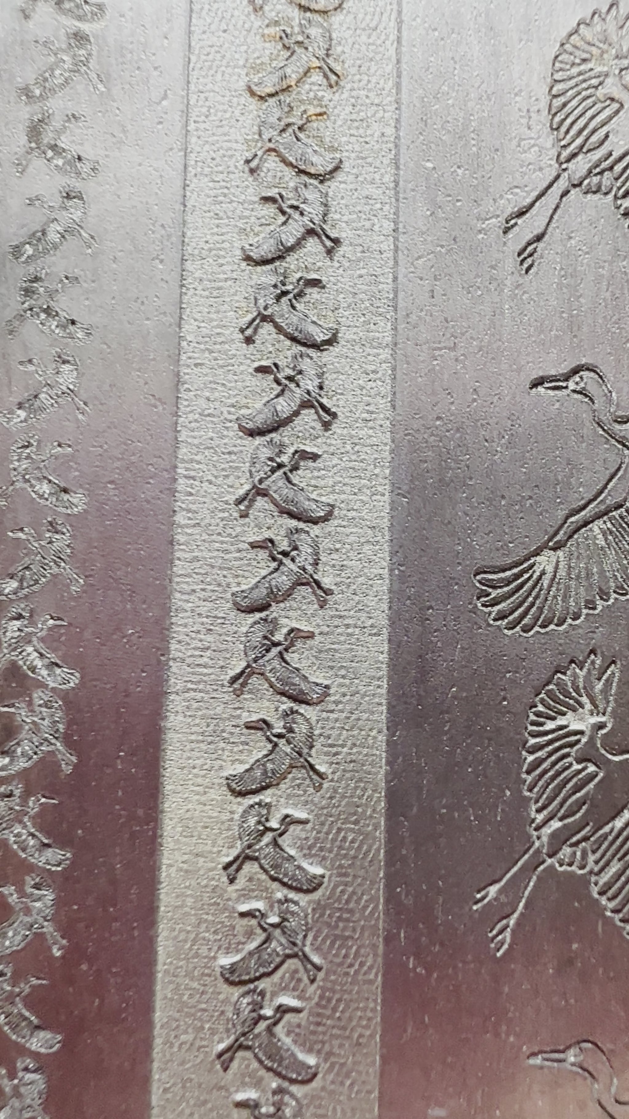 With a positive and a negative impression, there are two crane ring patterns, and a larger pattern of cranes for other uses.