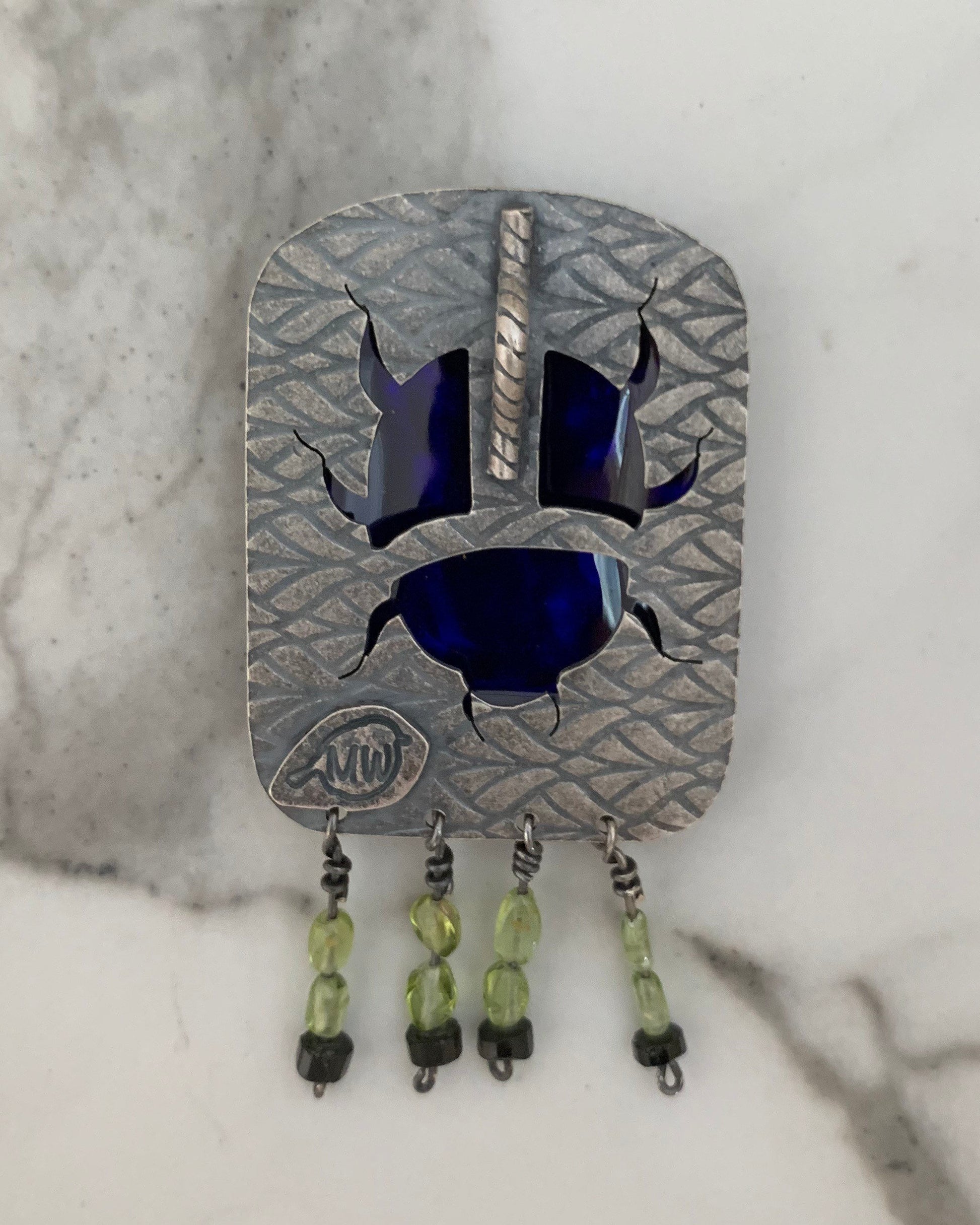 My version of the Egyptian Ba, the soul. Working with enamels gives me such joy, and this piece is no exception. The Ba is situated with the Nile river flowing behind it, and just a hint of the river banks. The human head on the bird body is so fascinating and mystical.