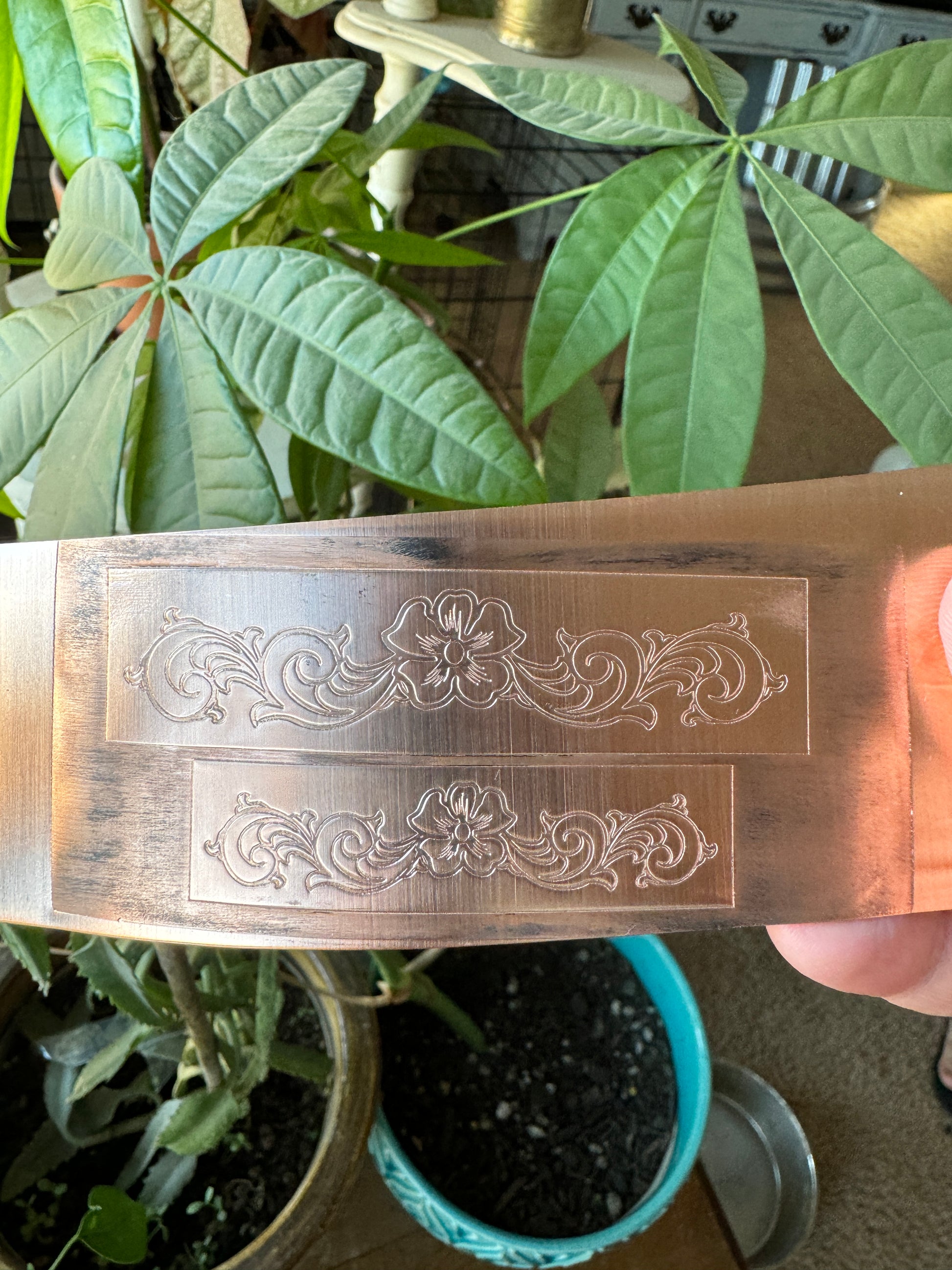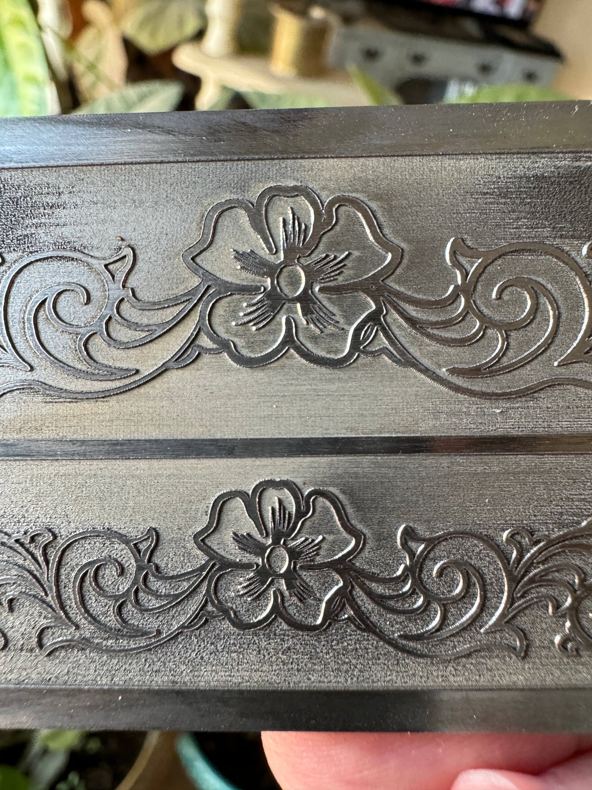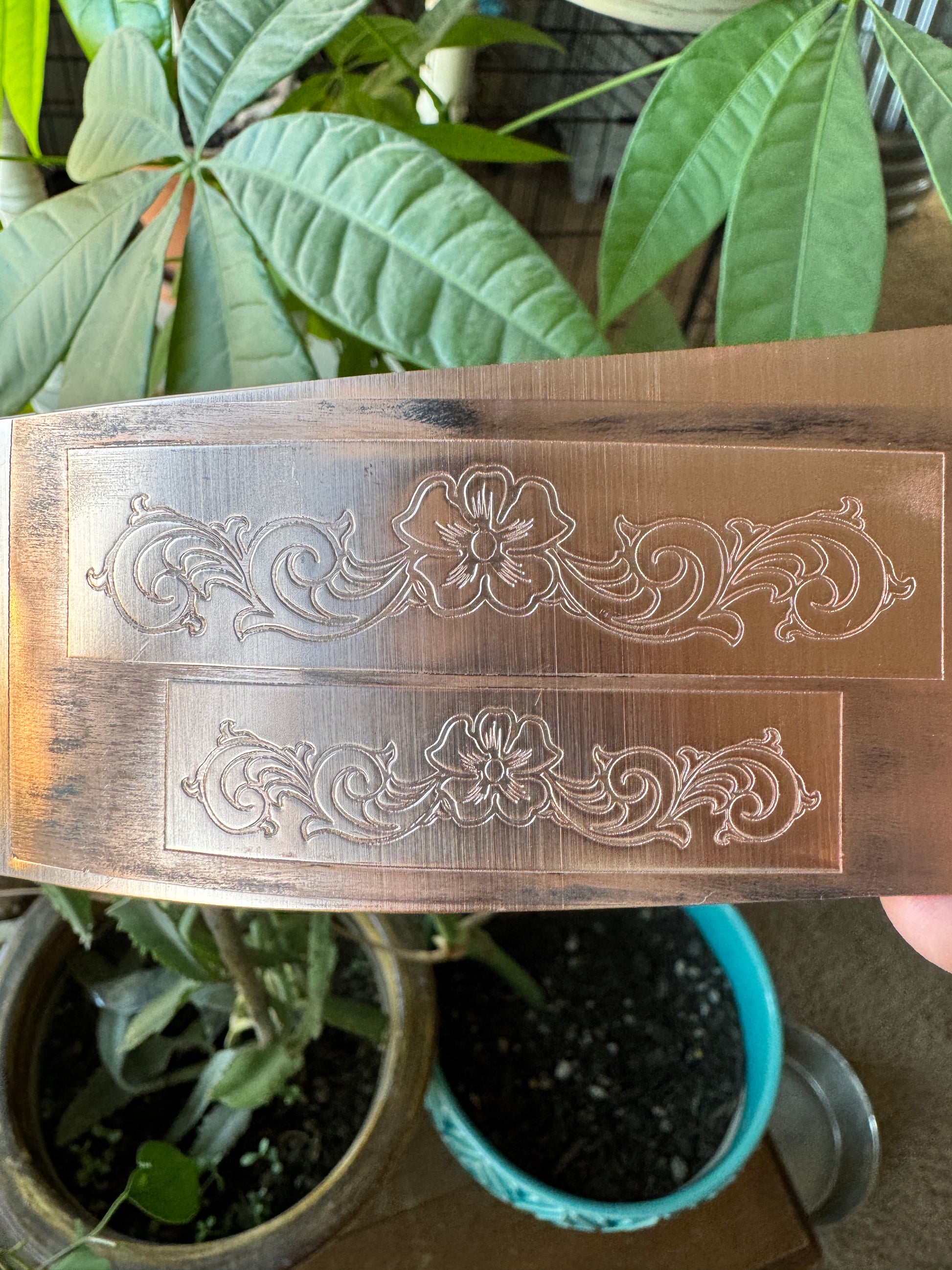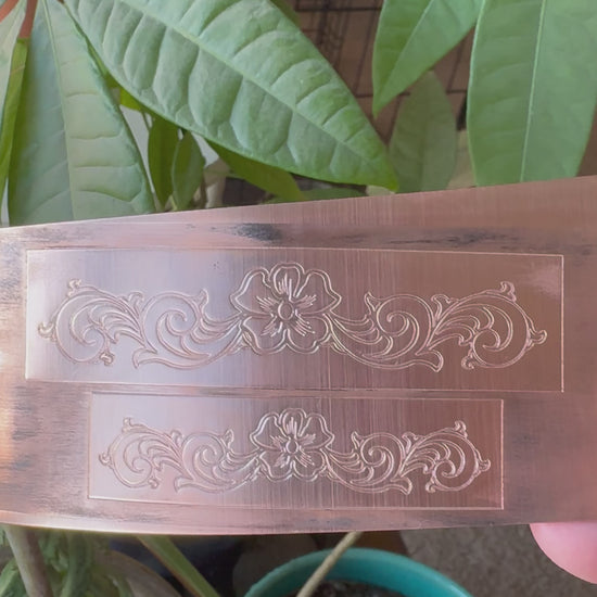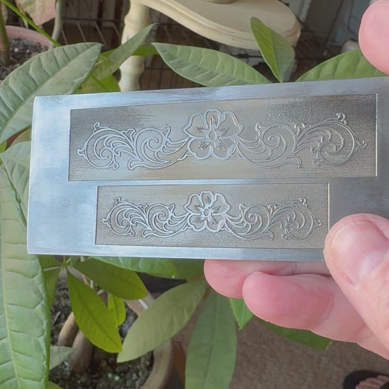 This design is perfect for a hair clip or a cuff embellishment measuring approximately 3 1/4 and 2 1/2 inchesin length. From a Daniel Urrea legacy design.