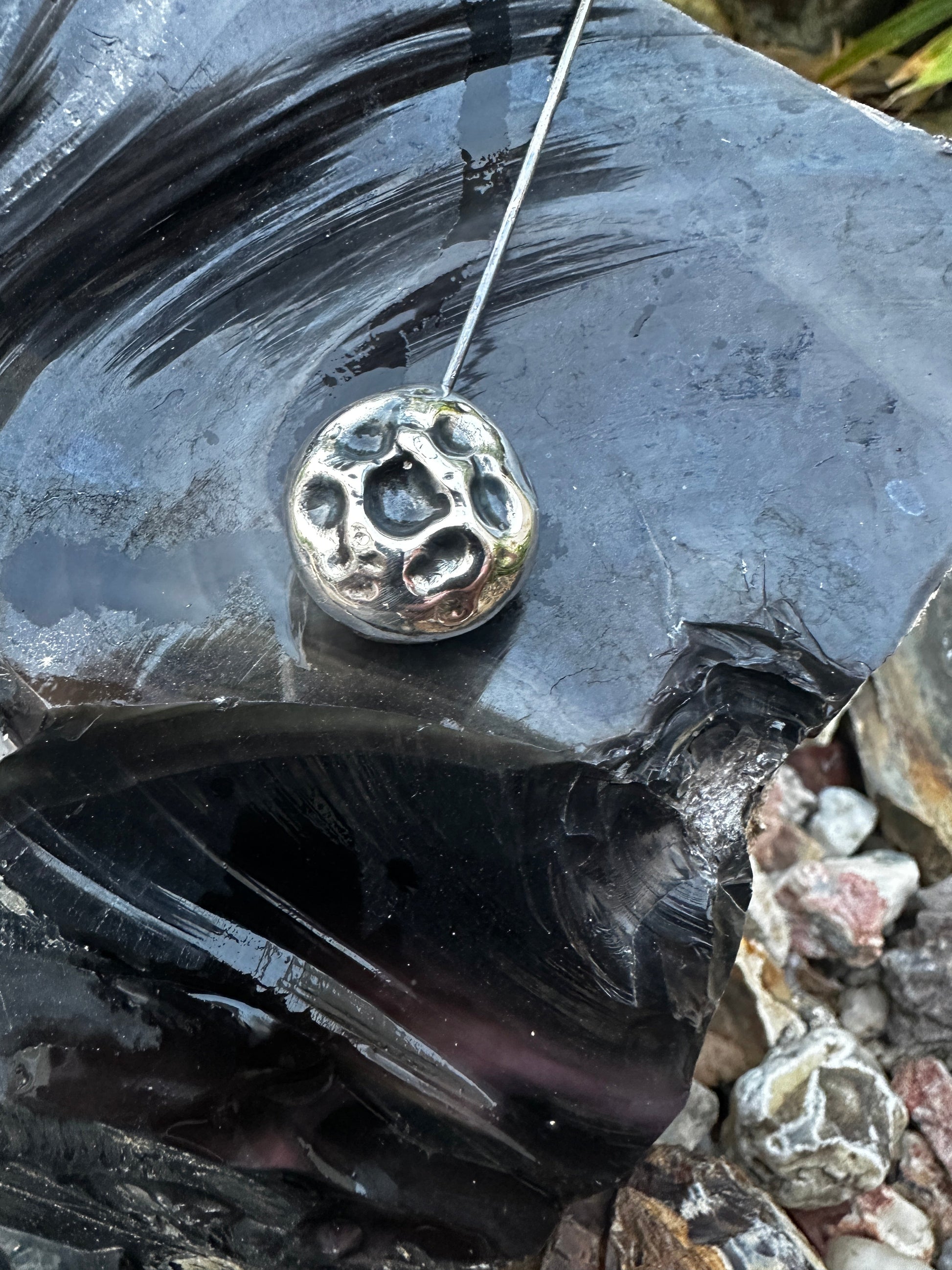 This tool was inspired during a class with Nichole Ringgold. Nichole makes amazingly realistic jewelry and art. While making a hollow cherry from sterling silver I realized there had to be a better way to hold rounded objects for soldering. if you haven’t taken a class from her I highly recommend it- Chris