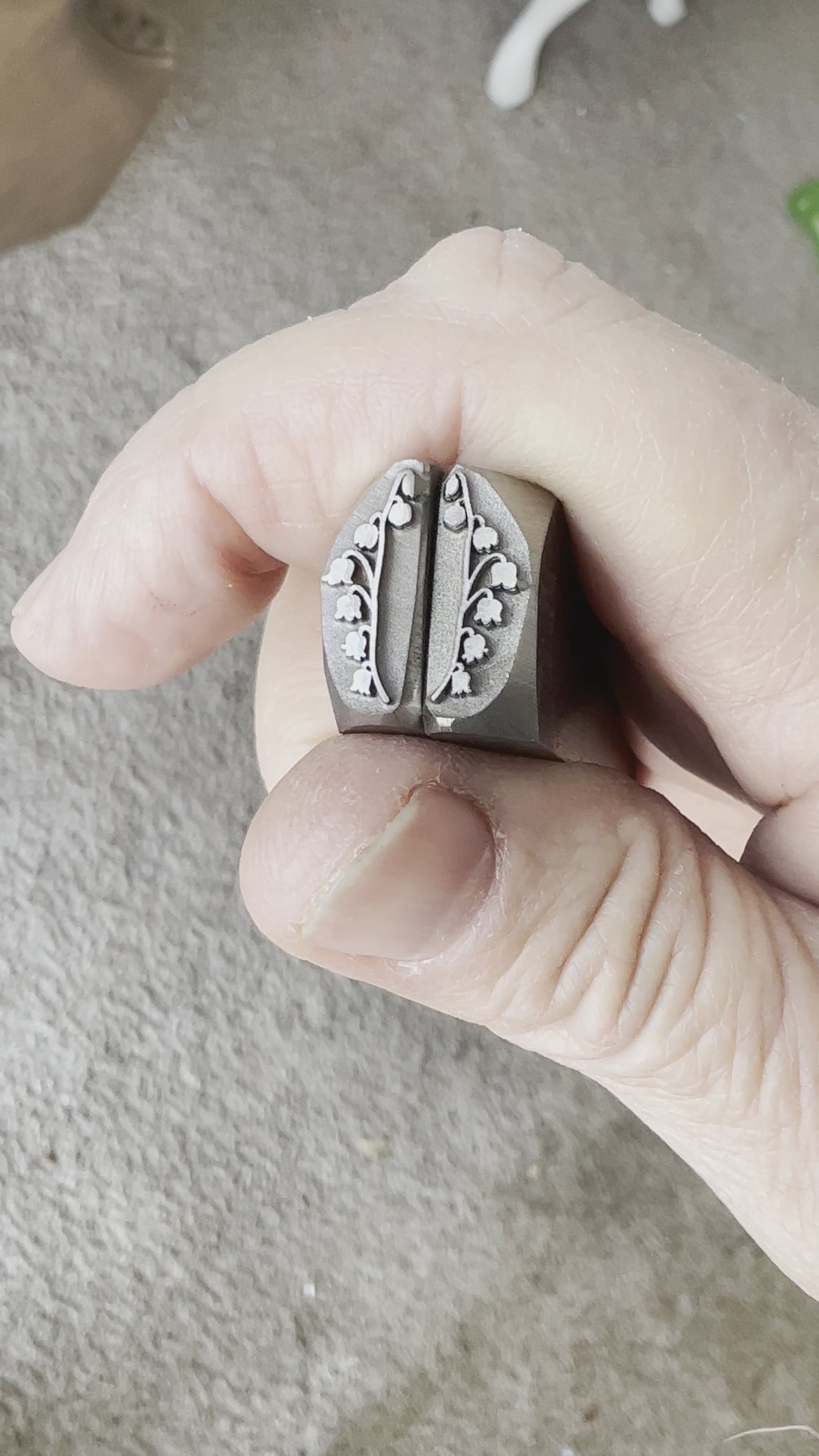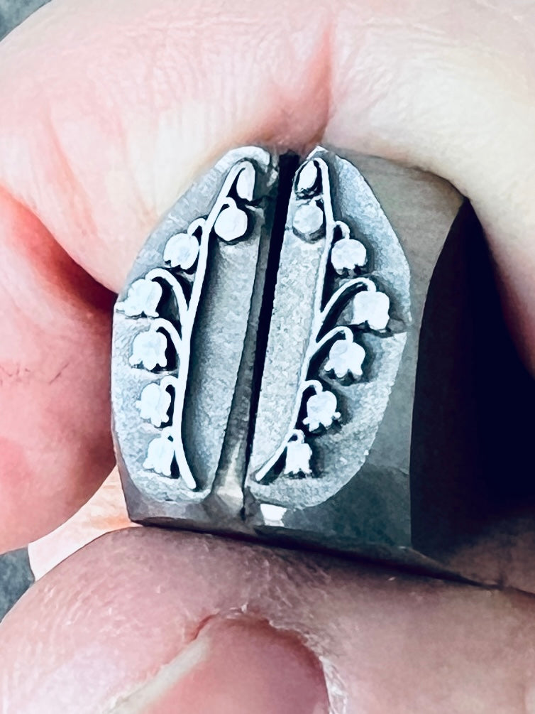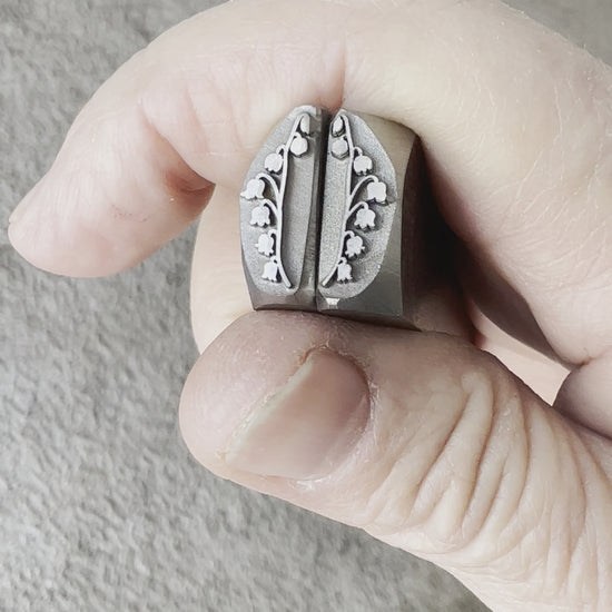 This is a set of lily-of-the-valley designed by Maha. These are border stamps, perfect, for stamping alongside a cabochon or for dangling pair of earrings. 14 mm long