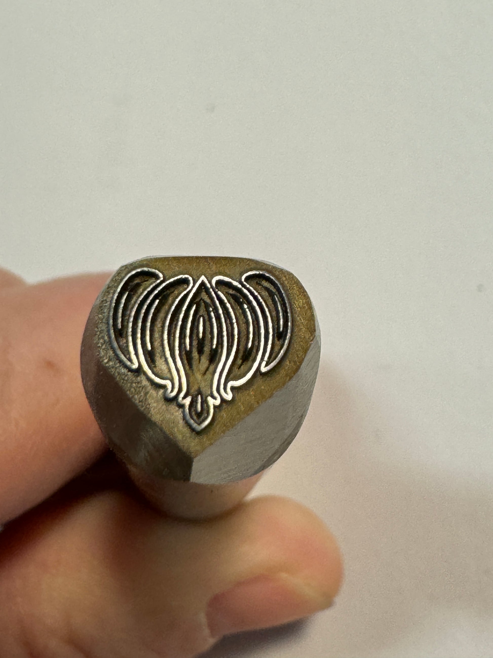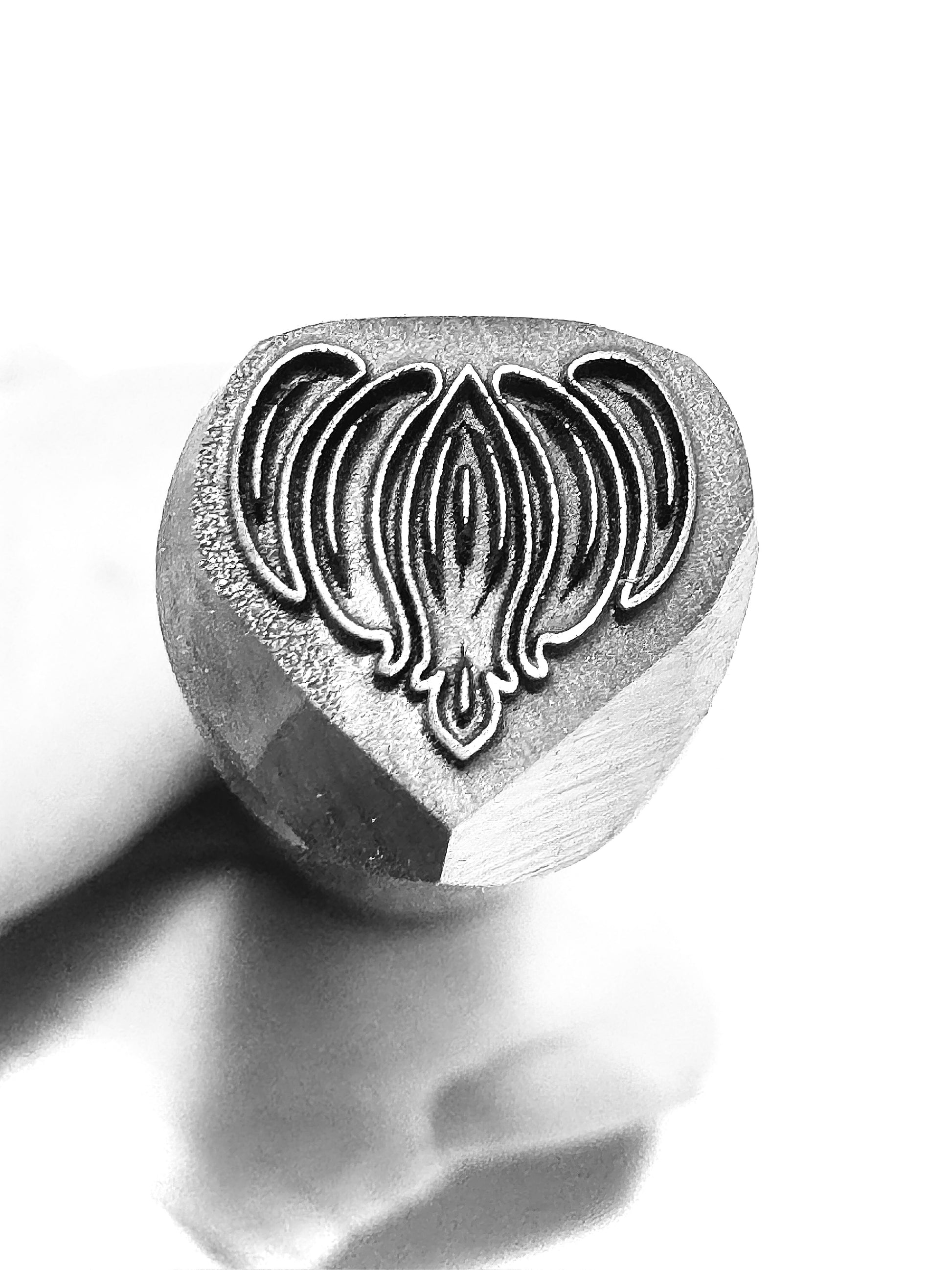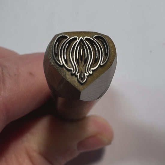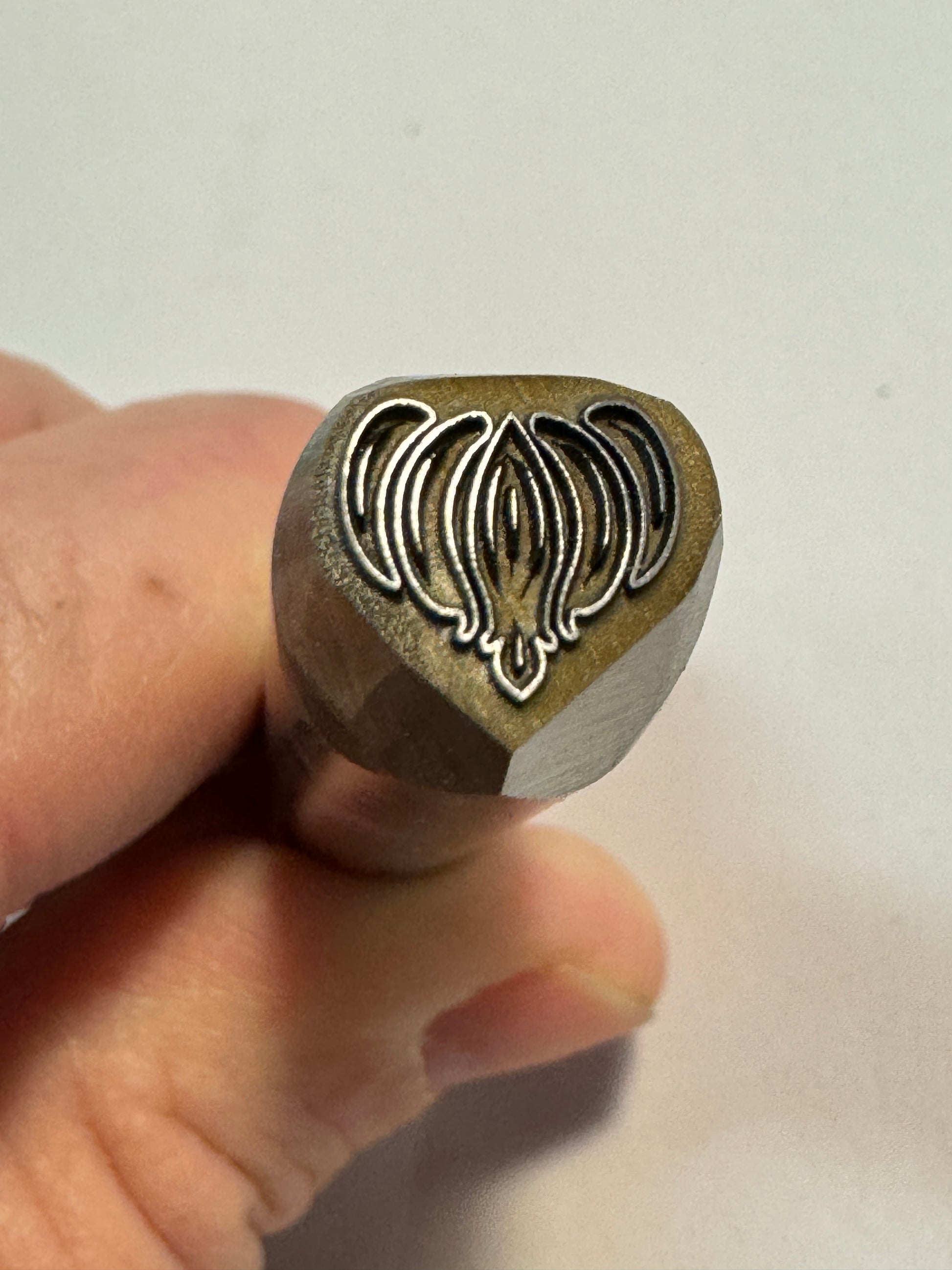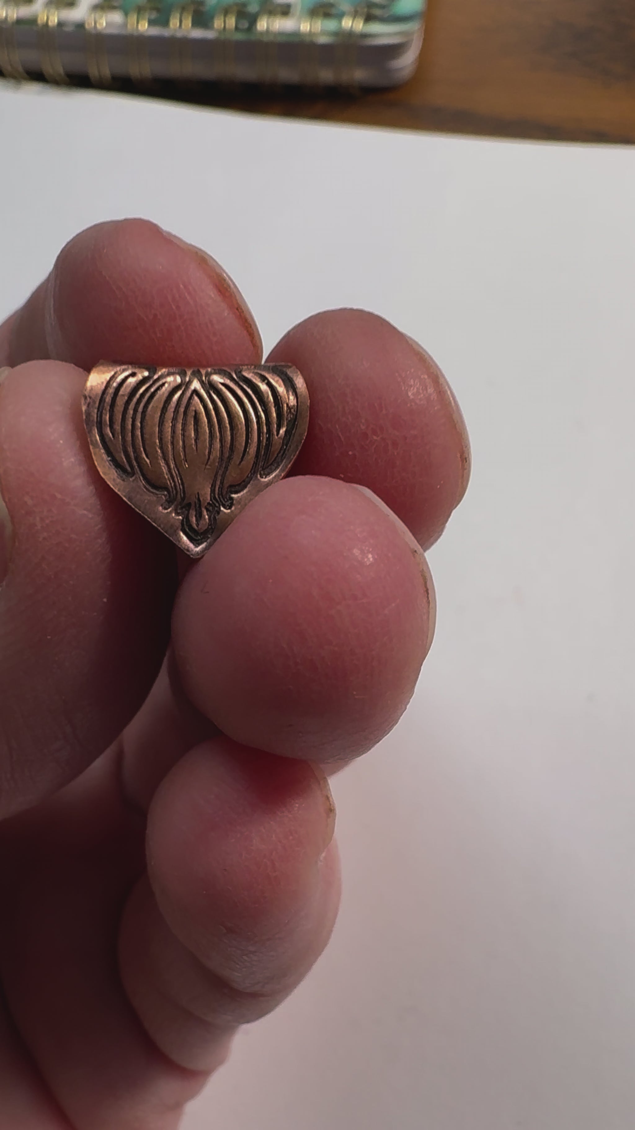 A bail stamp that would work well as an accent around a bezel, this lotus design is versatile.