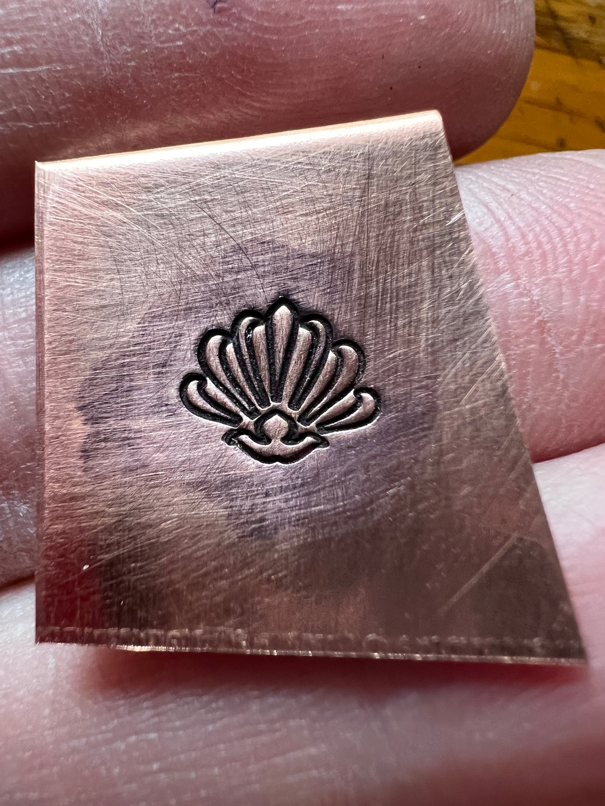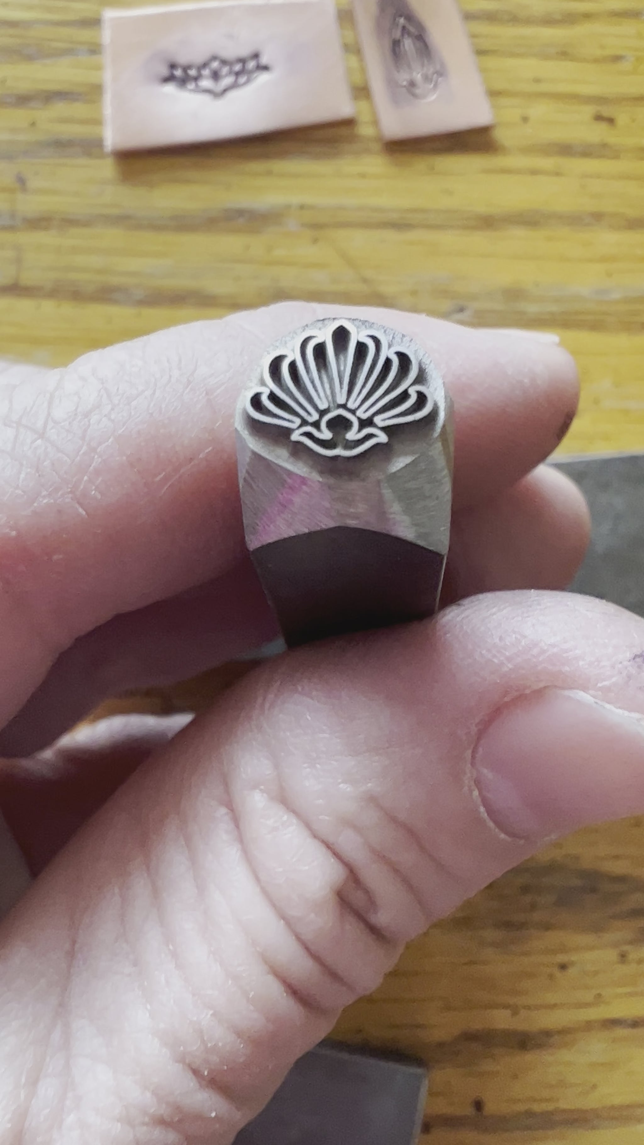 An art nouveau style lotus in half bloom, this is a stamp for nonferrous metals. Approximately 10 mm