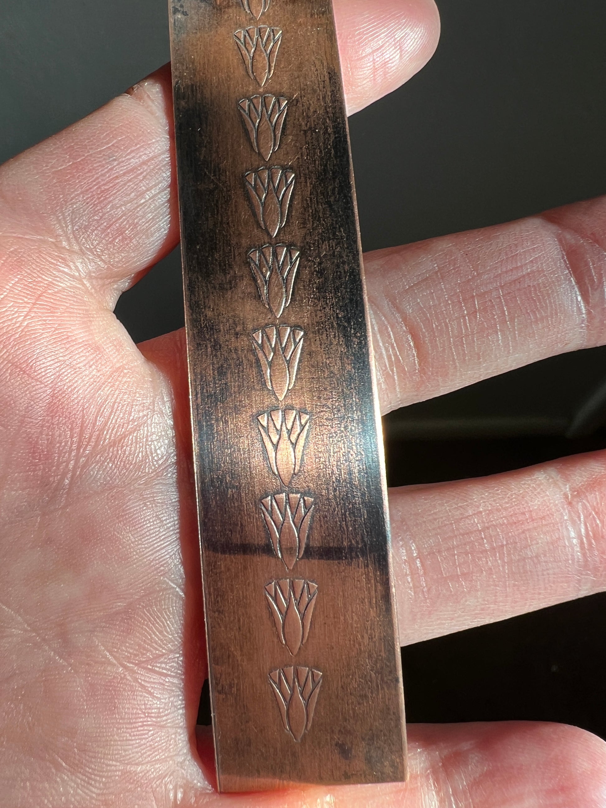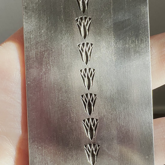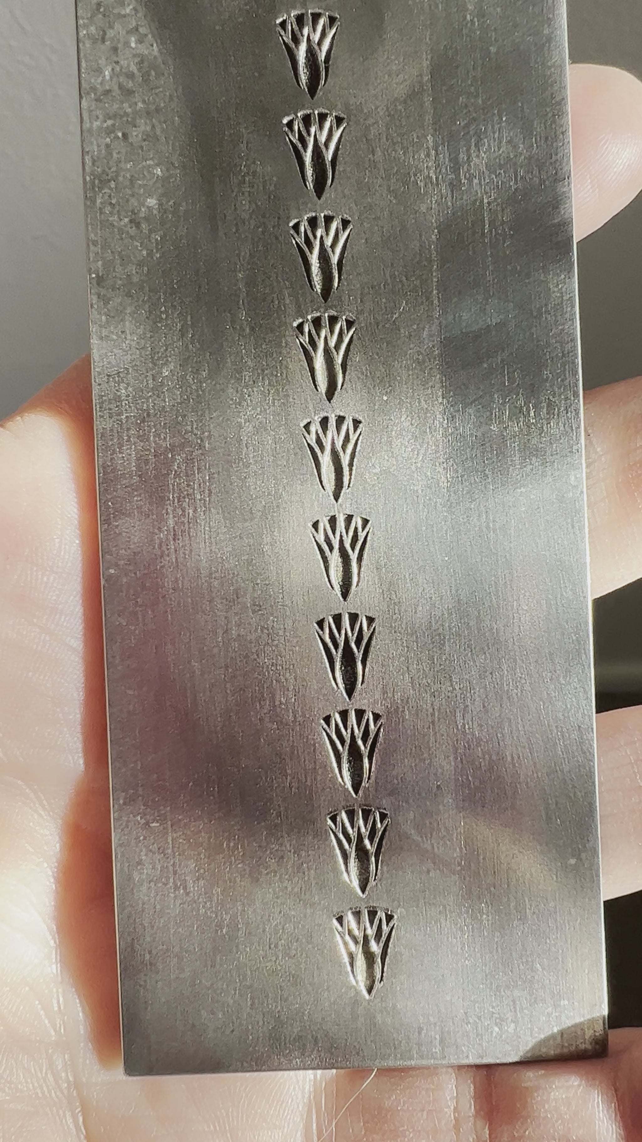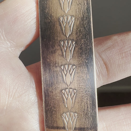 The plate measures 45 mm x 100 mm aproximately. This design is for creating your own ring out of Egyptian style lotuses.