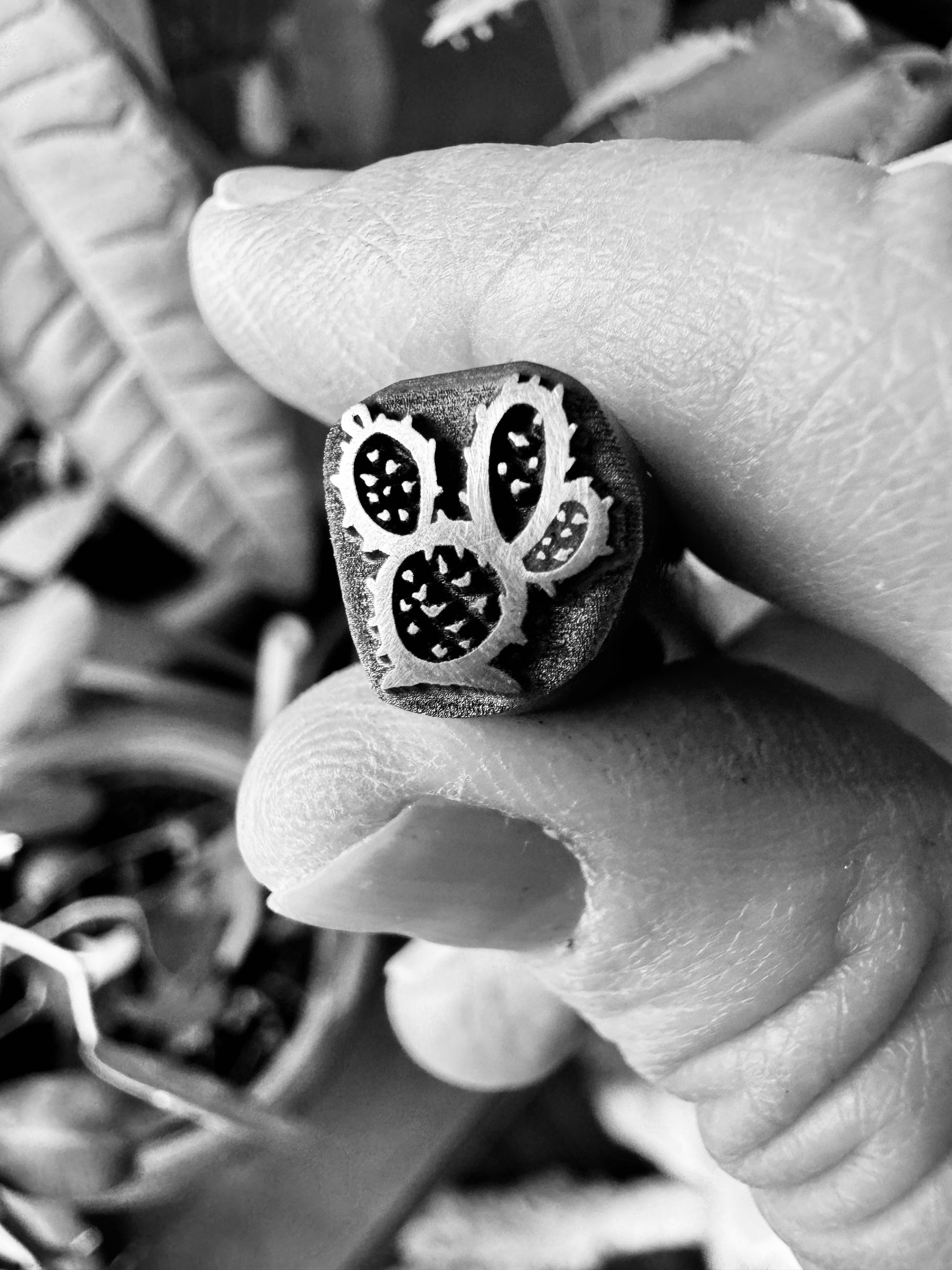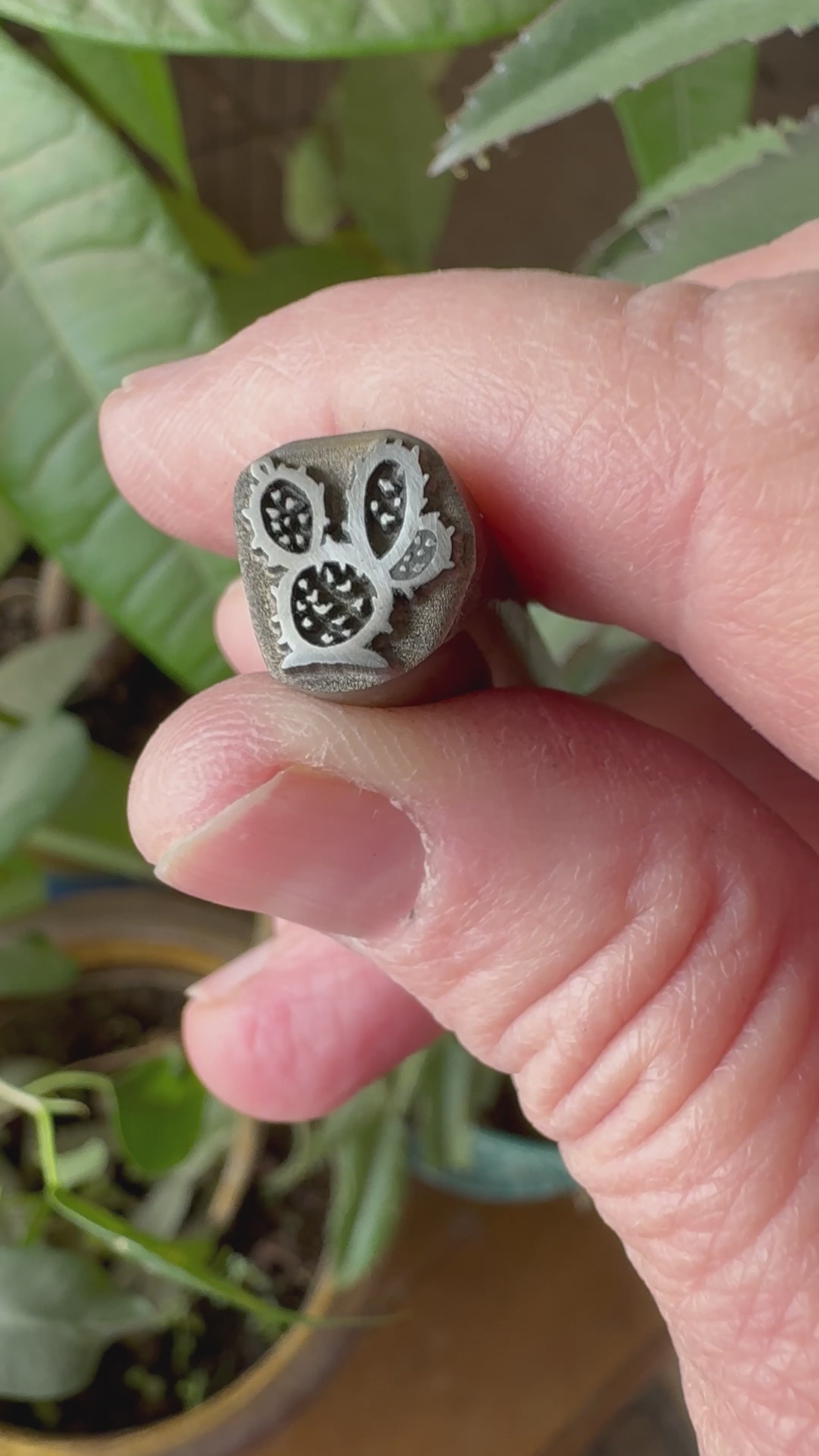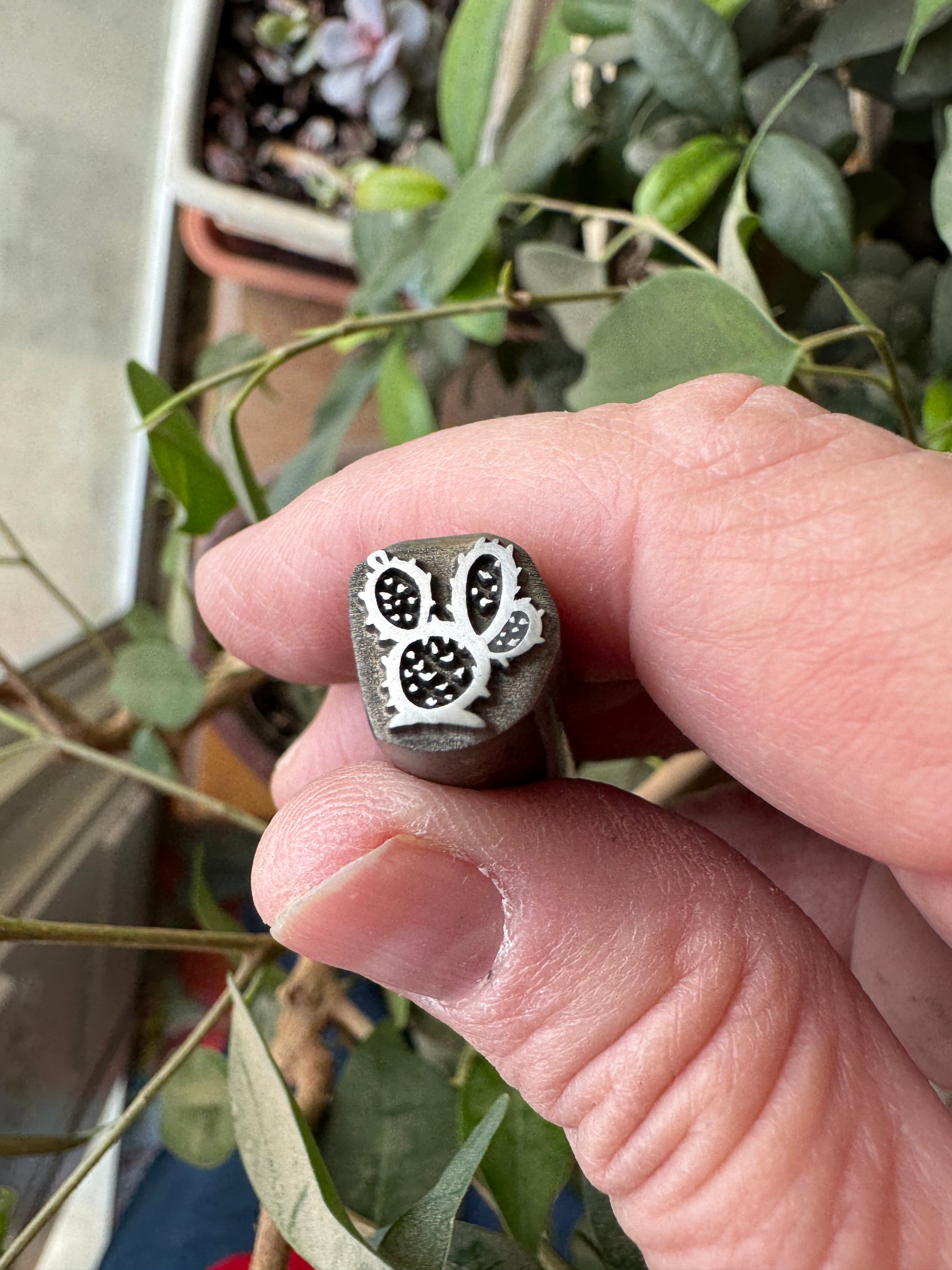 This is one of Daniel Urrea’s legacy designs, and a must have for the southwest jeweler. The large size is approximately 10 mm, and the medium is approximately 8 mm