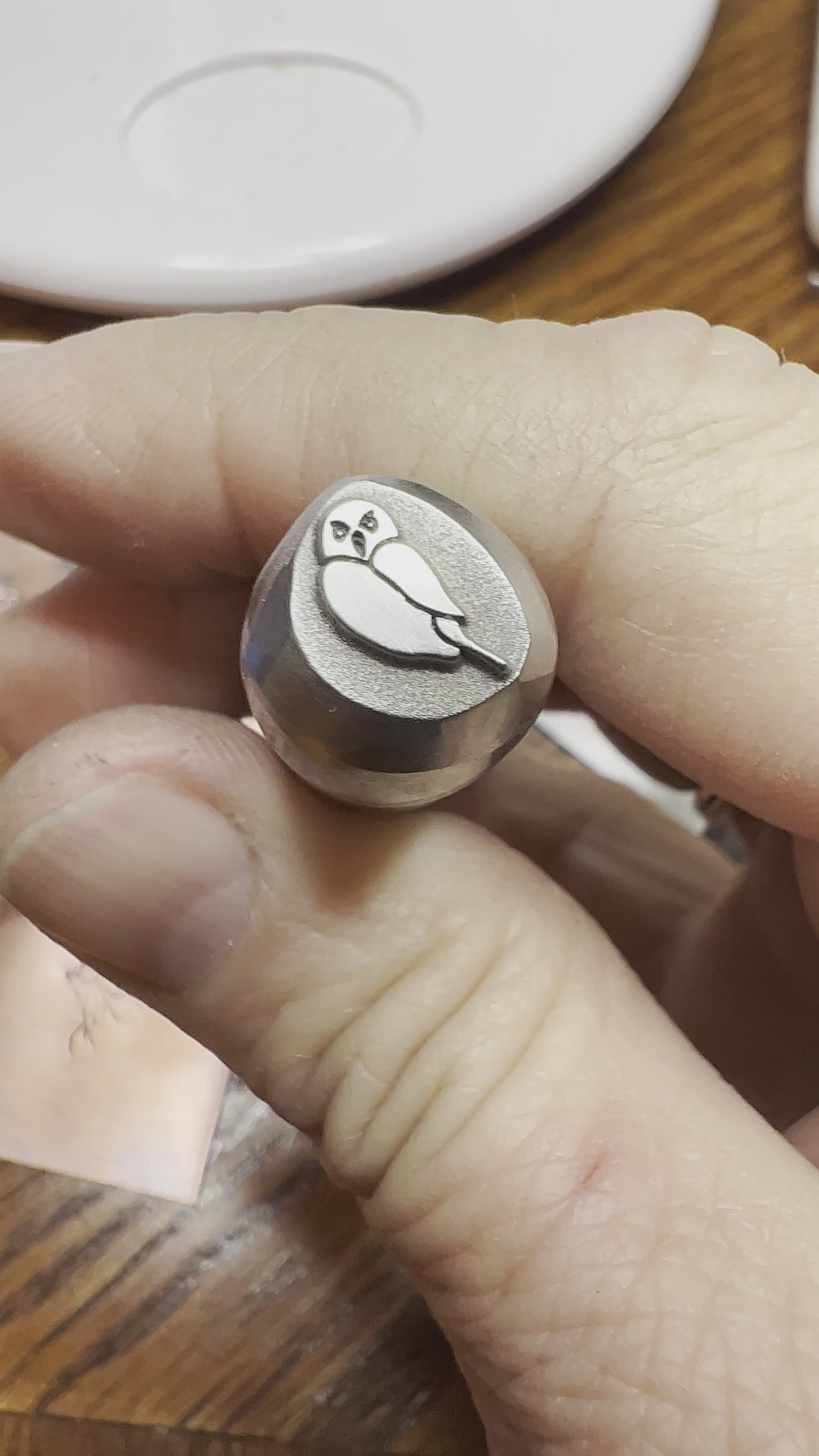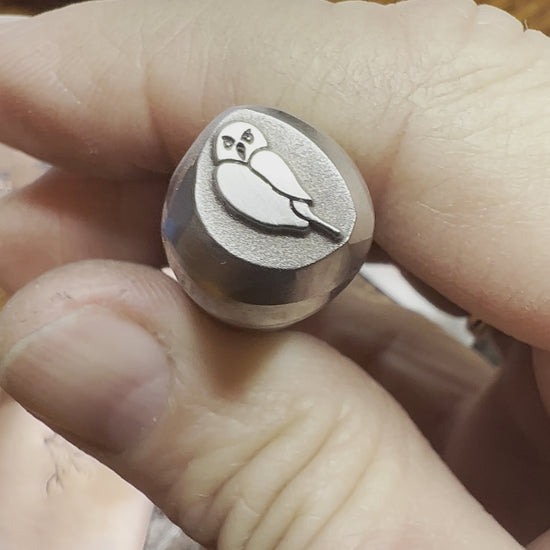 Made of heat treated steel, designed by Maha. Design is aproximately 10 mm long.