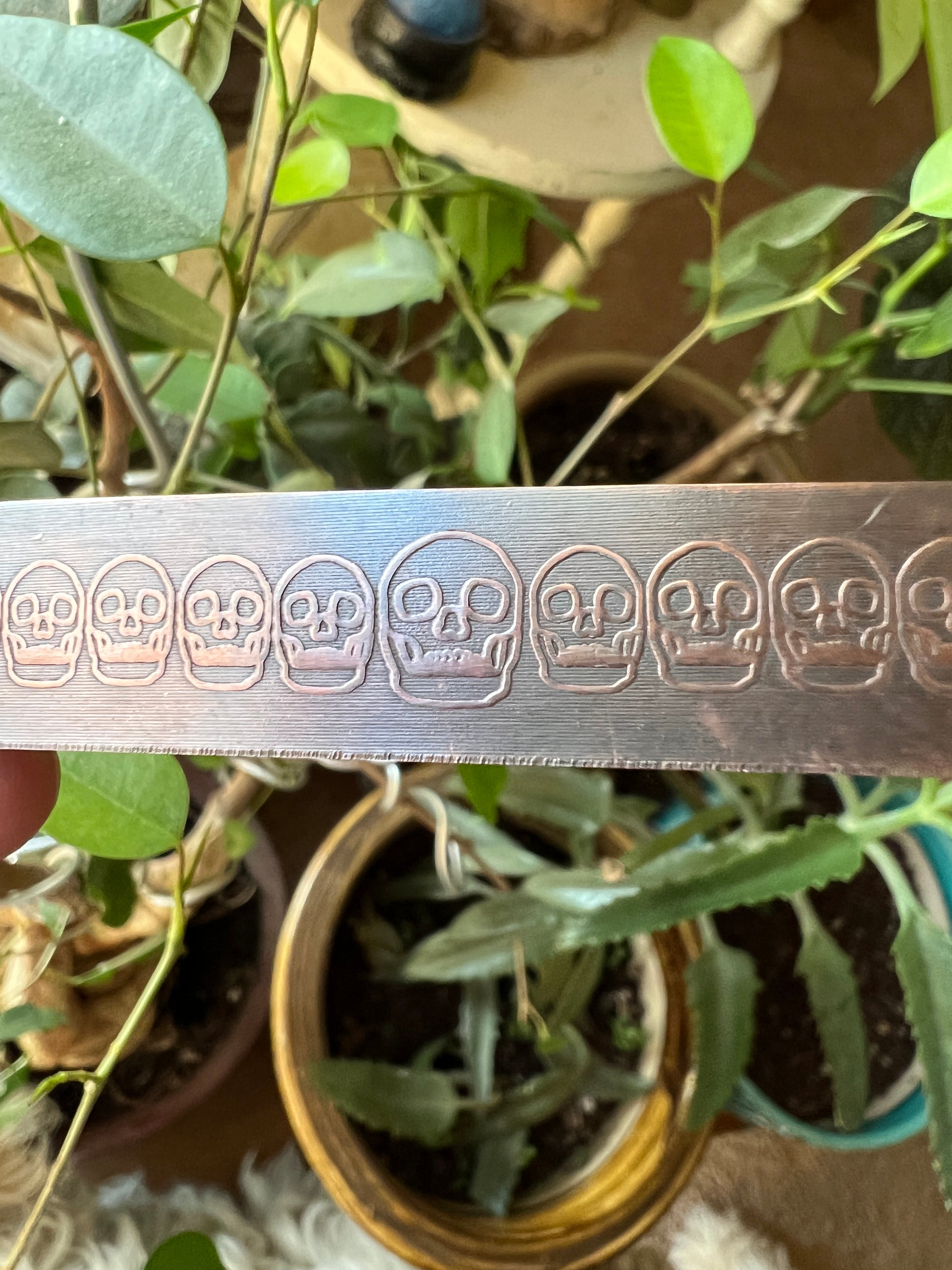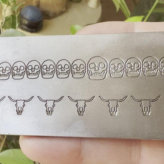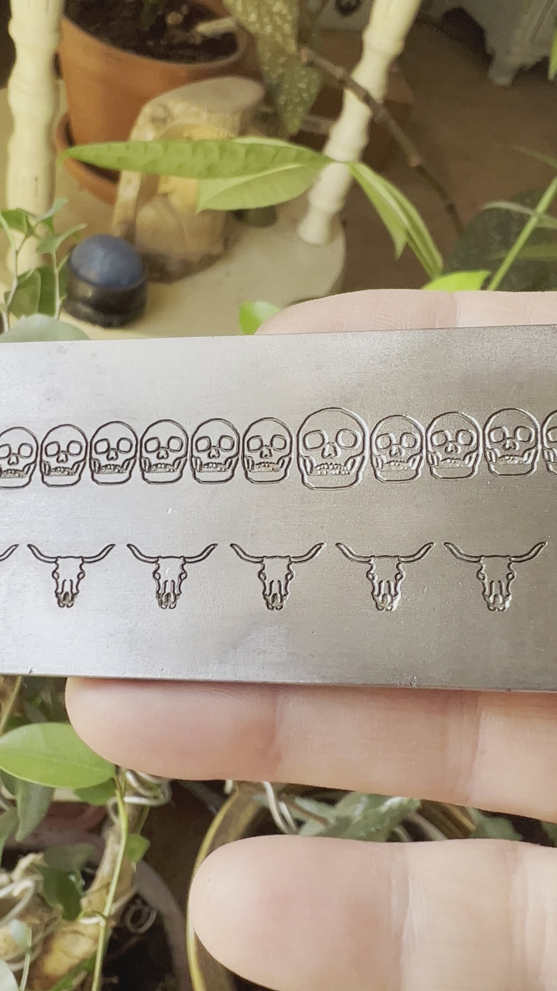 Featuring a human skull ring, and a steer skull ring, this is the second in the series of skull ring plates for the rolling Mill.