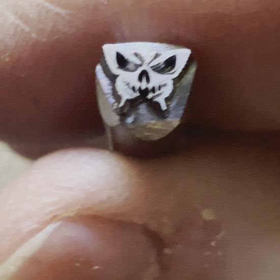 Combining the imagery of a butterfly and a skull, this is a wonderfully unique stamp designed by Daniel Urrea.