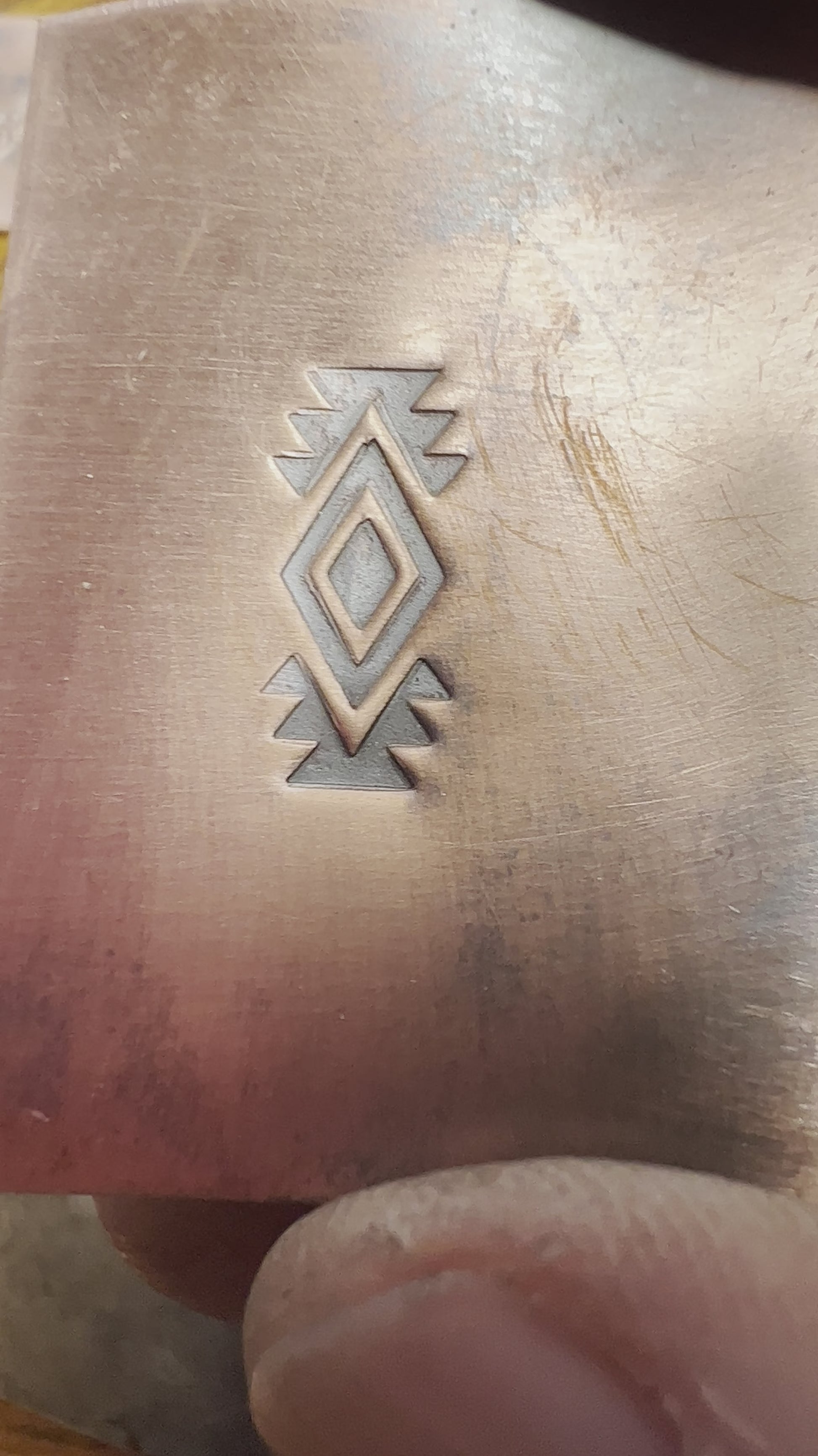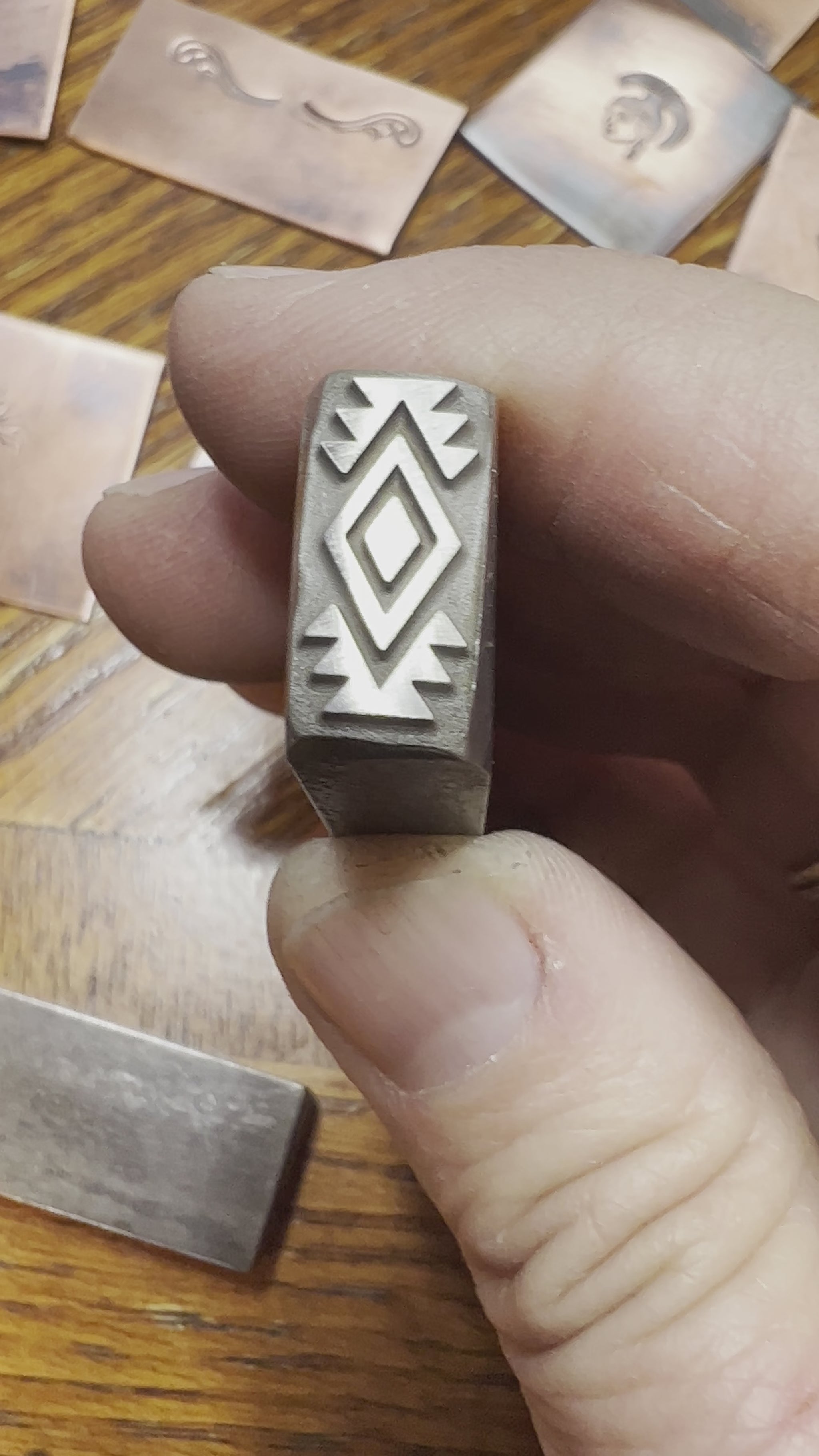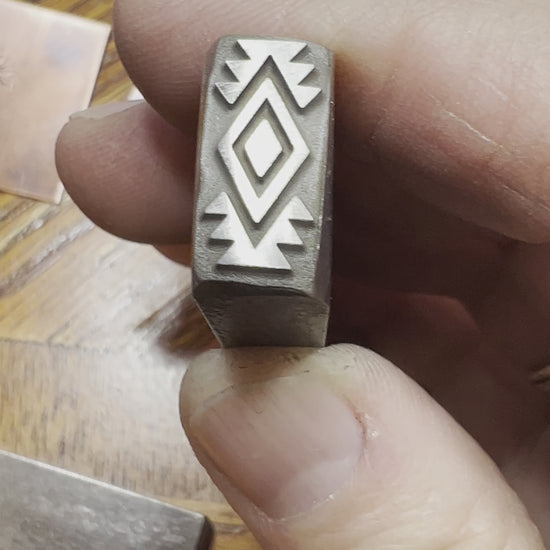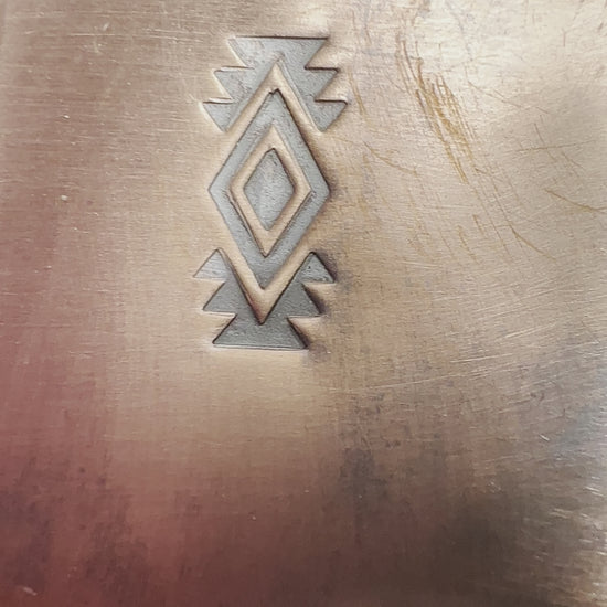 A Daniel Urrea Legacy design, this stamp reads very traditional Southwest. Would be perfect paired with some turqouise. 14 mm by 6 mm aproximately.