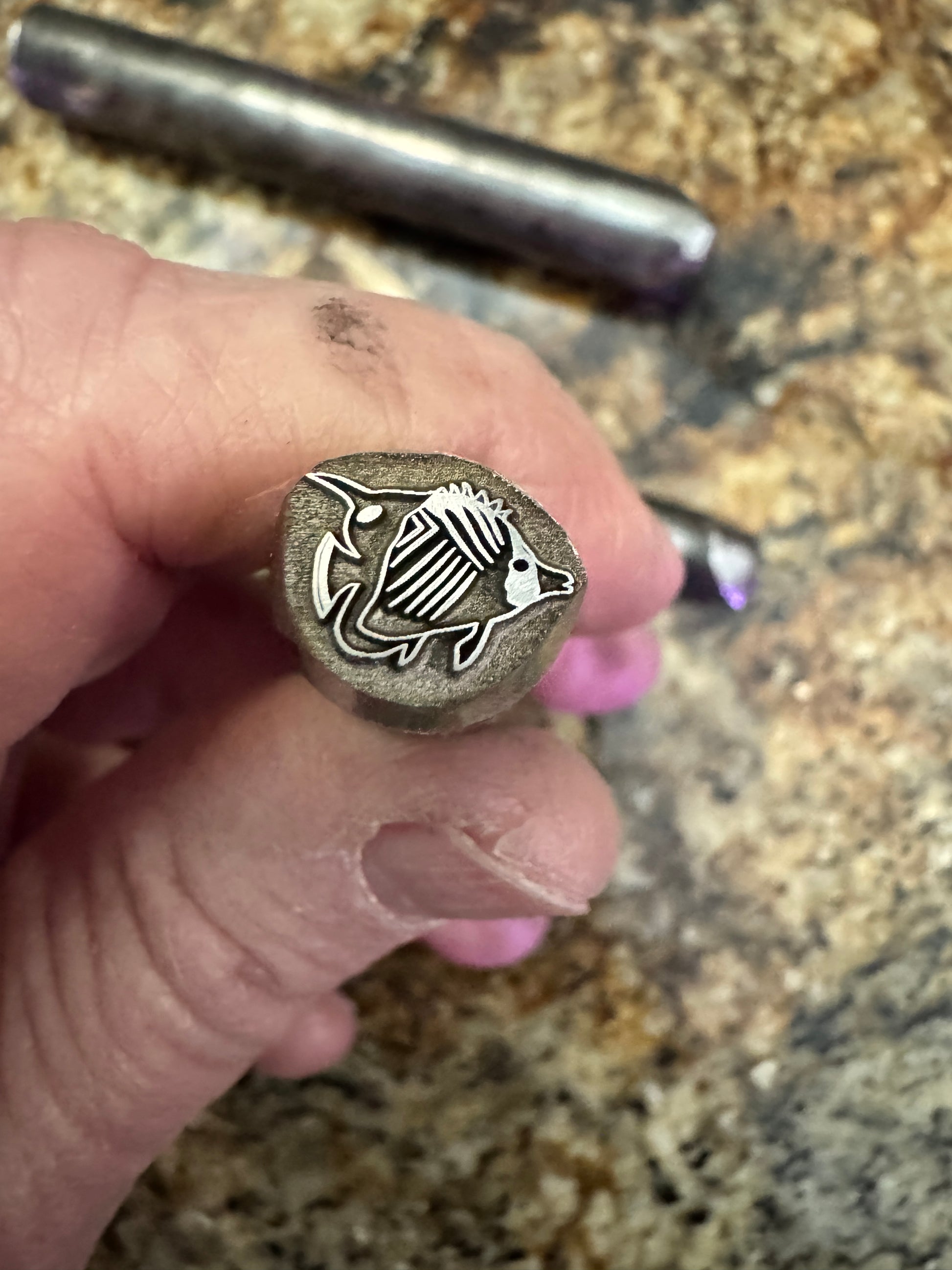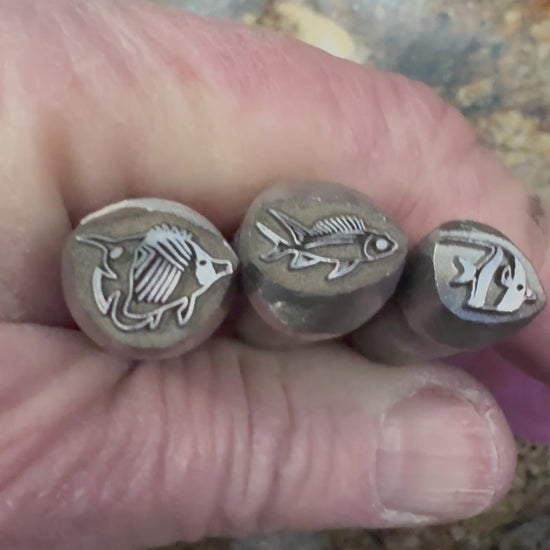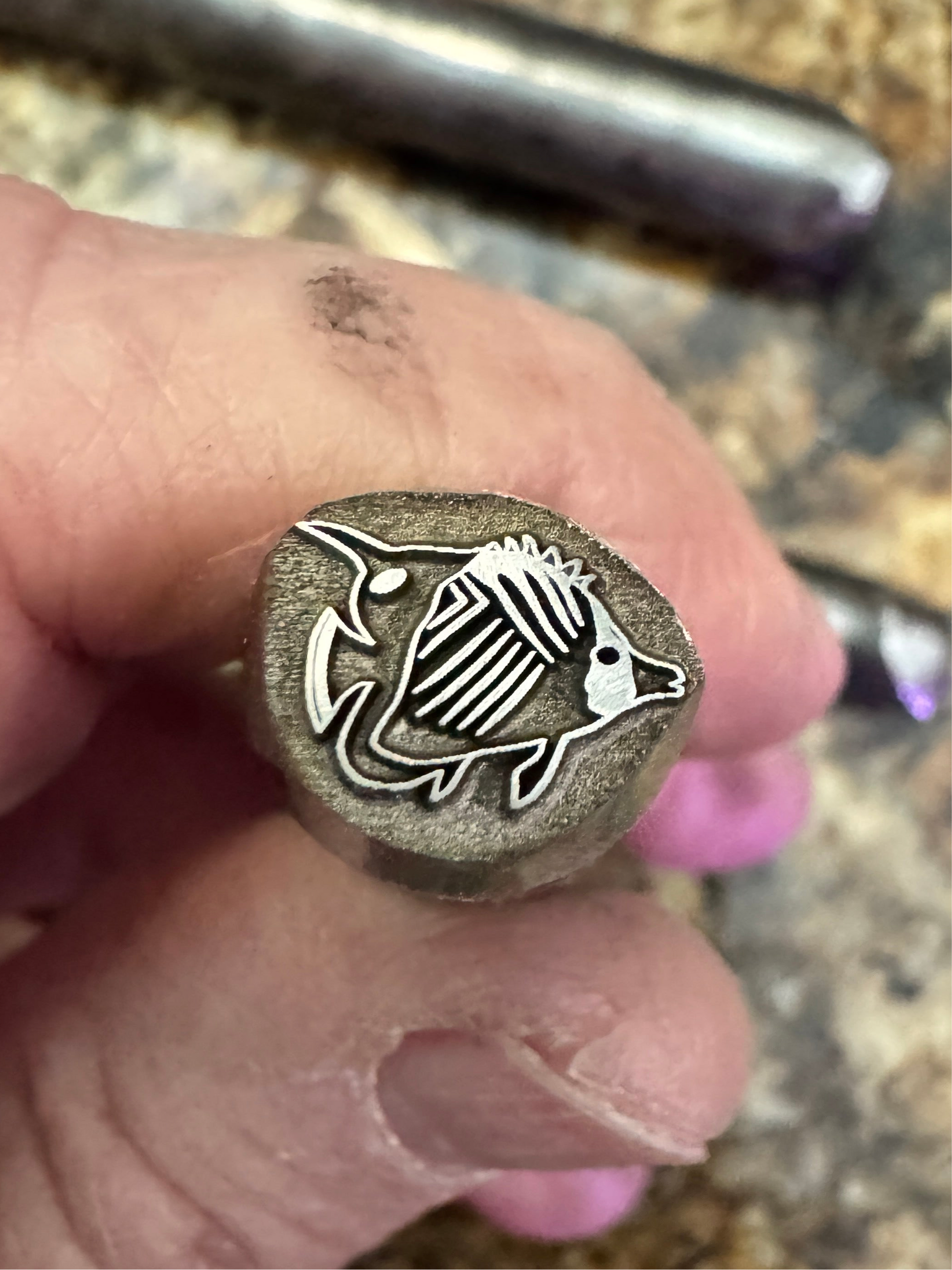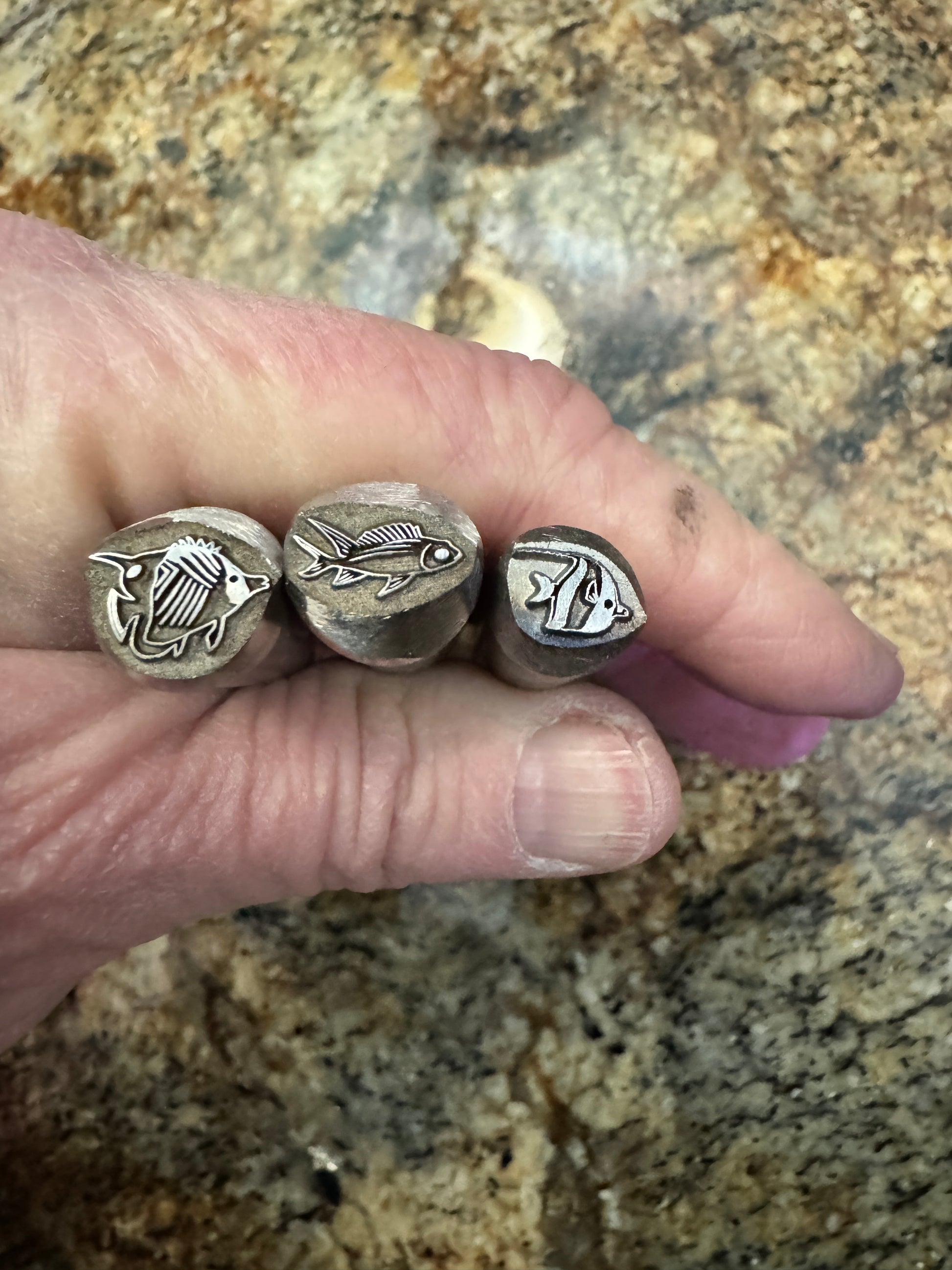 Approximately 9 mm, this is a reproduction of the tropical threadfin butterfly fish. Perfect for stamping earrings or ornaments around a pendant.