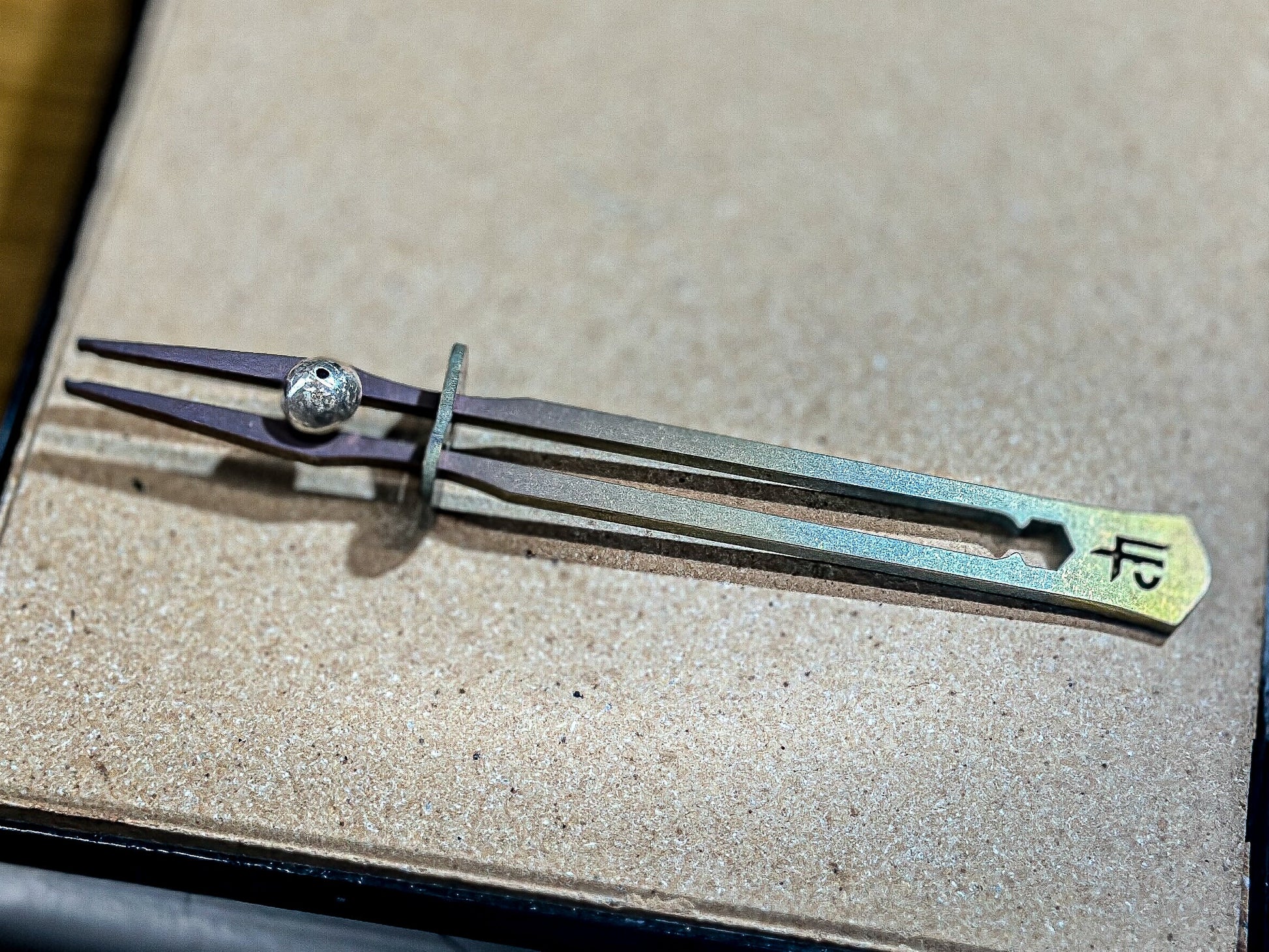 The Ti Tweezy features a 5mm resting jaw opening, which offers excellent thermal conductivity and is ideal for soldering applications. **It is important to note that this tool may not be suitable for those with hand injuries or weakened hands.** Crafted from Grade 5 Titanium, it provides a one-piece construction with a titanium locking clip. The Locking clip can be used as a lever for easier manipulation.