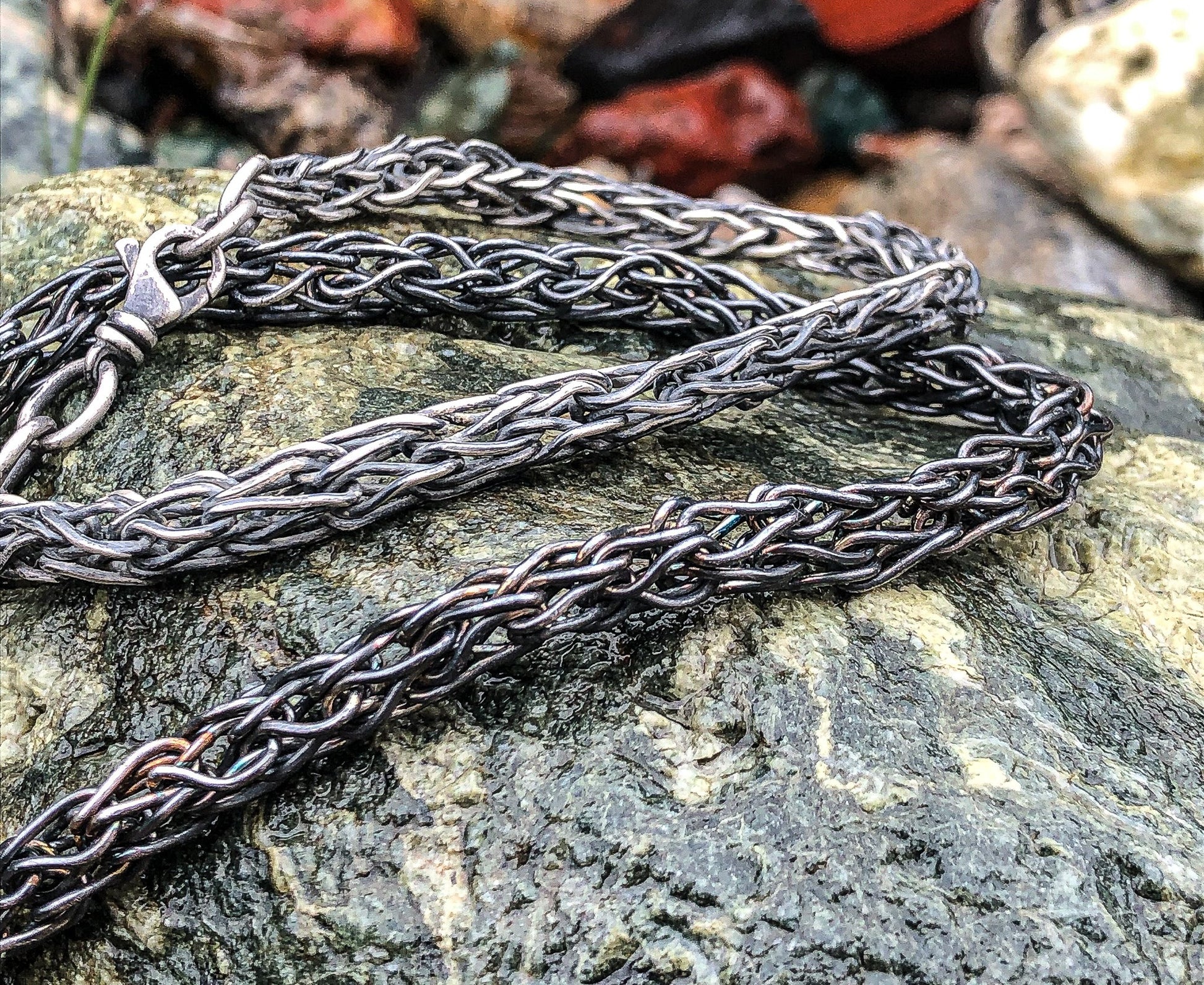The authors explore many of the ancient and modern variations of this chain link. One version called Multidirectional loop in loop chains uses several oval links to create a complex multi link woven chain.